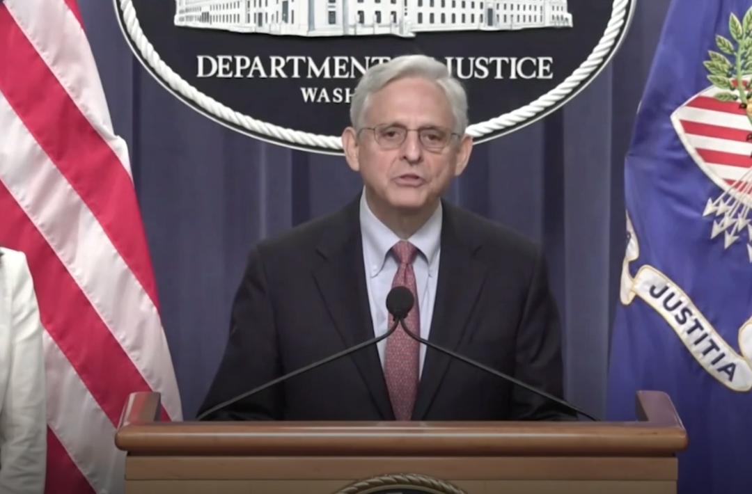 当地时间8月2日,美国司法部长梅里克·加兰在发布会上。《纽约时报》视频截图