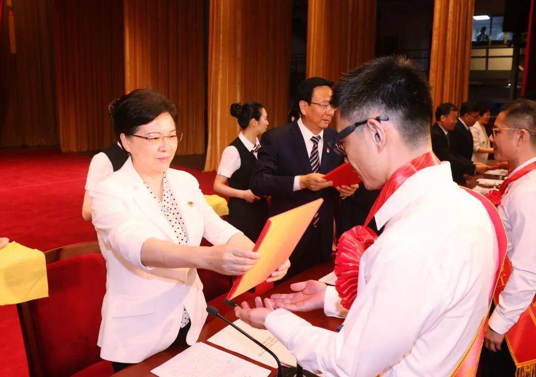 沈文祖宣读市委表彰决定,共有100名优秀共产党员、100名优秀党务工作者、100个先进基层党组织获表彰,与会领导分别为受表彰代表颁奖。省优秀党务工作者代表魏统田、市优秀共产党员代表曹林、市优秀党务工作者代表徐水兰、省和市先进基层党组织代表谌翠红作交流发言。