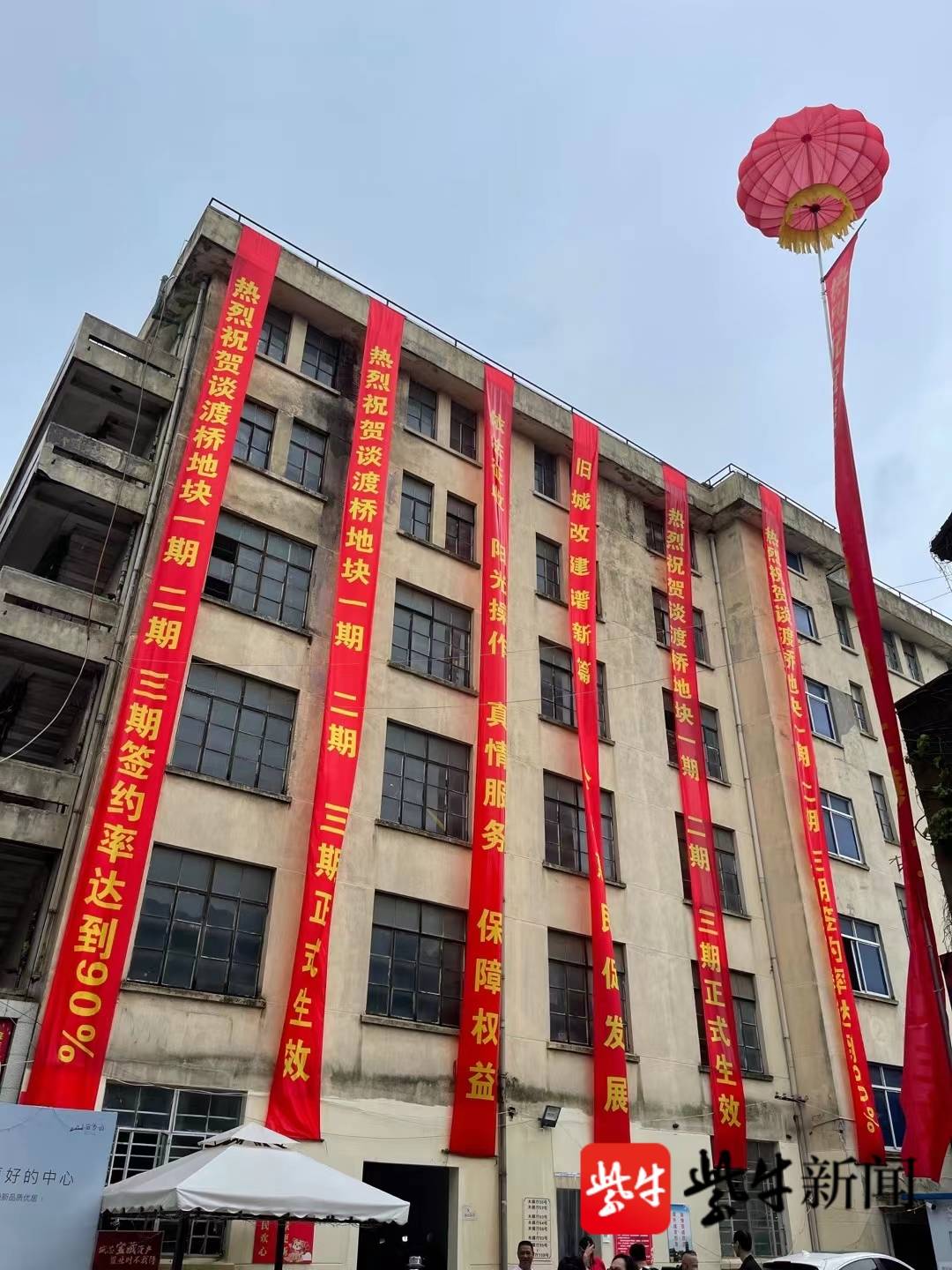 记者看到,当天的谈渡桥地块上,彩带飞舞、彩球飘扬,喜庆的场面犹如过年般,“谈渡桥地块一期、二期、三期正式生效”、“谈渡桥地块一期、二期、三期地块签约率达到90%”、“旧城改建谱新篇”等字样无不在告诉人们,这里即将“改头换面”。谈渡桥坐落于无锡市中心的黄金地块,所涉房屋涵盖新民路、振新路、木樨厅、谈渡桥弄,共计住宅806户,非住宅15家。地块占地面积约7.7万平方米,地块中房屋小面积多,其中48平米以下385户,占比48%,且多数私房年久失修,错落无序,已严重影响居民的出行和生活安全。