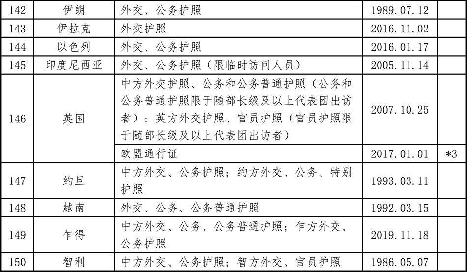 *3 适用《中国与欧盟关于互免持外交护照人员短期停留签证的协定》。