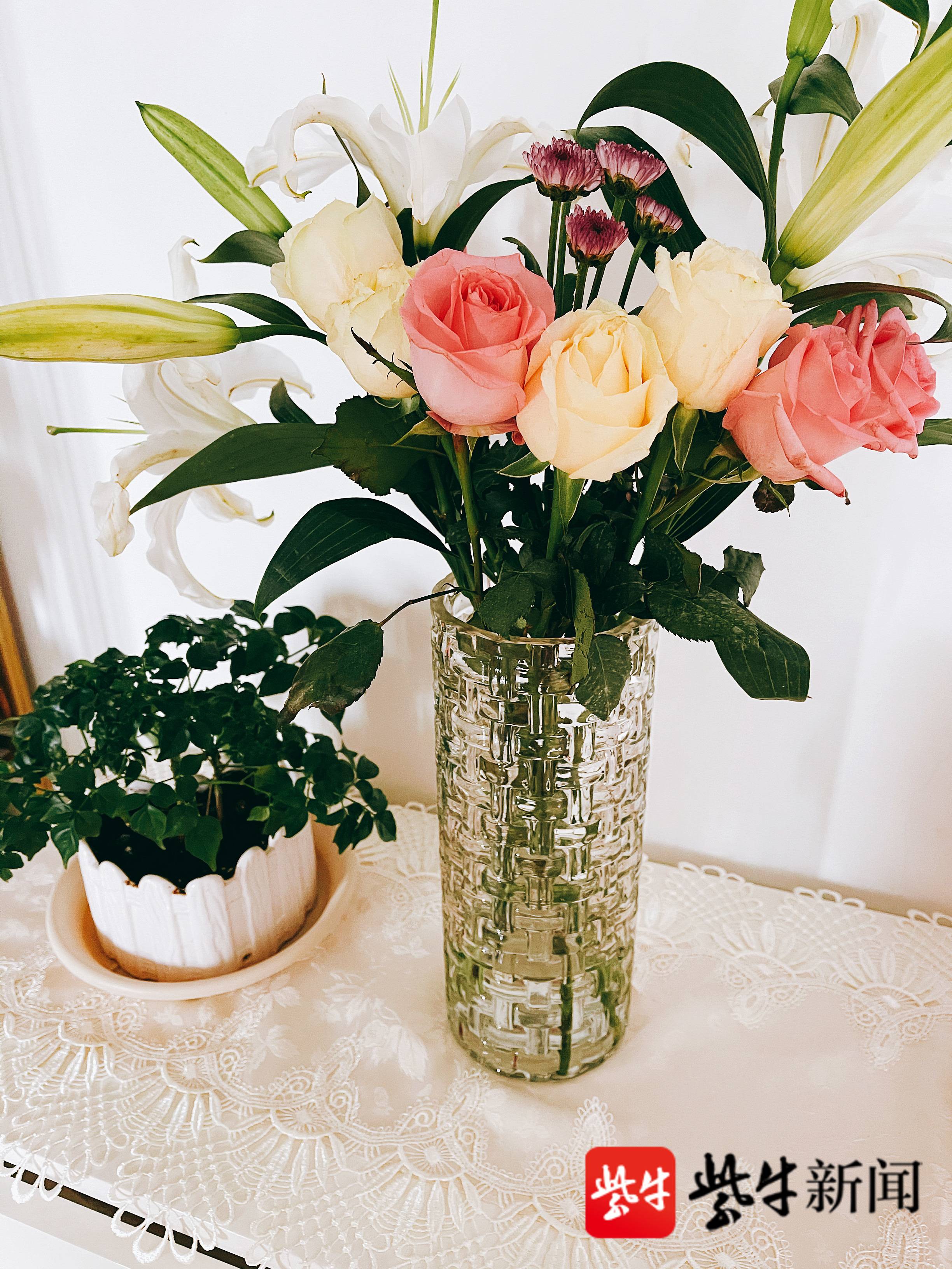 “想到了小时候,每年春节妈妈都会去花市,买新鲜的花朵回来装点,我也有样学样把家里挂满红彤彤的装饰,装点出热闹过节的气氛。”她说,装点了一下墙面,整个家都有了春节的气息,“确实在有点仪式感之后,生活都变得有了纪念意义,这个年也更温馨、更美好了。”