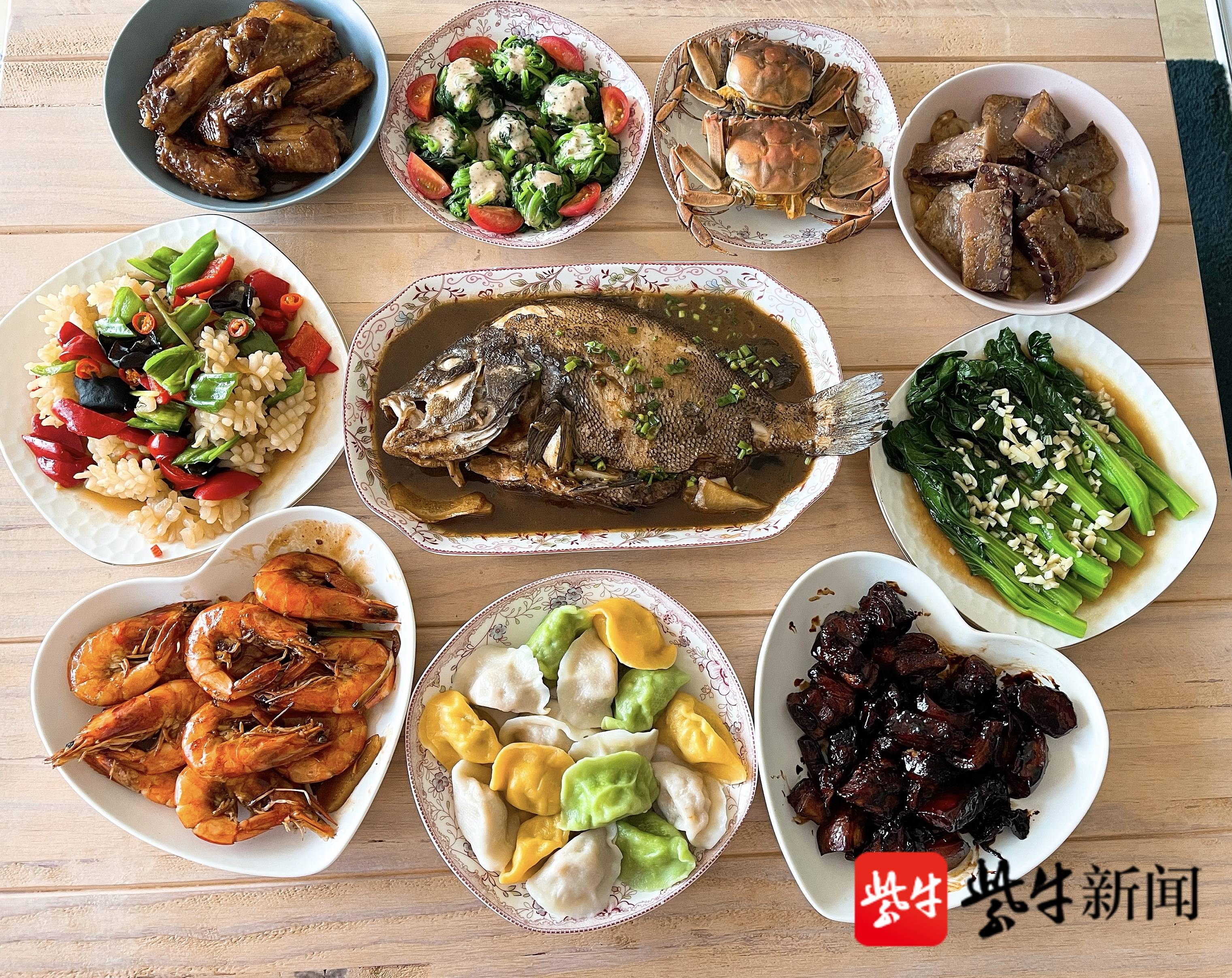 作为地道的北方人,饺子是绝对少不了的。一大早,吴晓珺就起来剁馅儿、和面。作为海边城市出来的人,海鲜也少不了,她亲手做了爆炒鱿鱼卷、红烧海鱼、大虾和螃蟹。