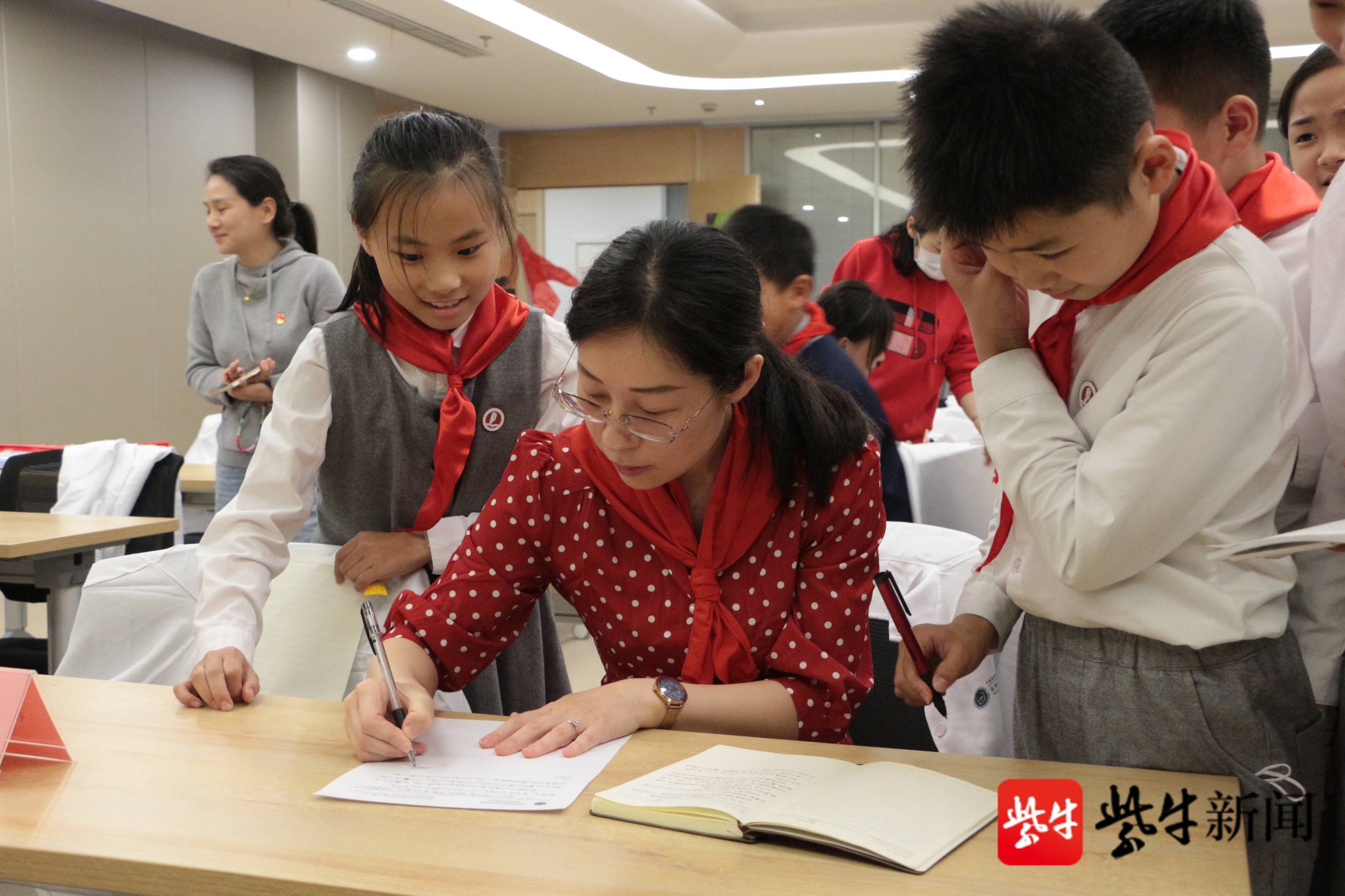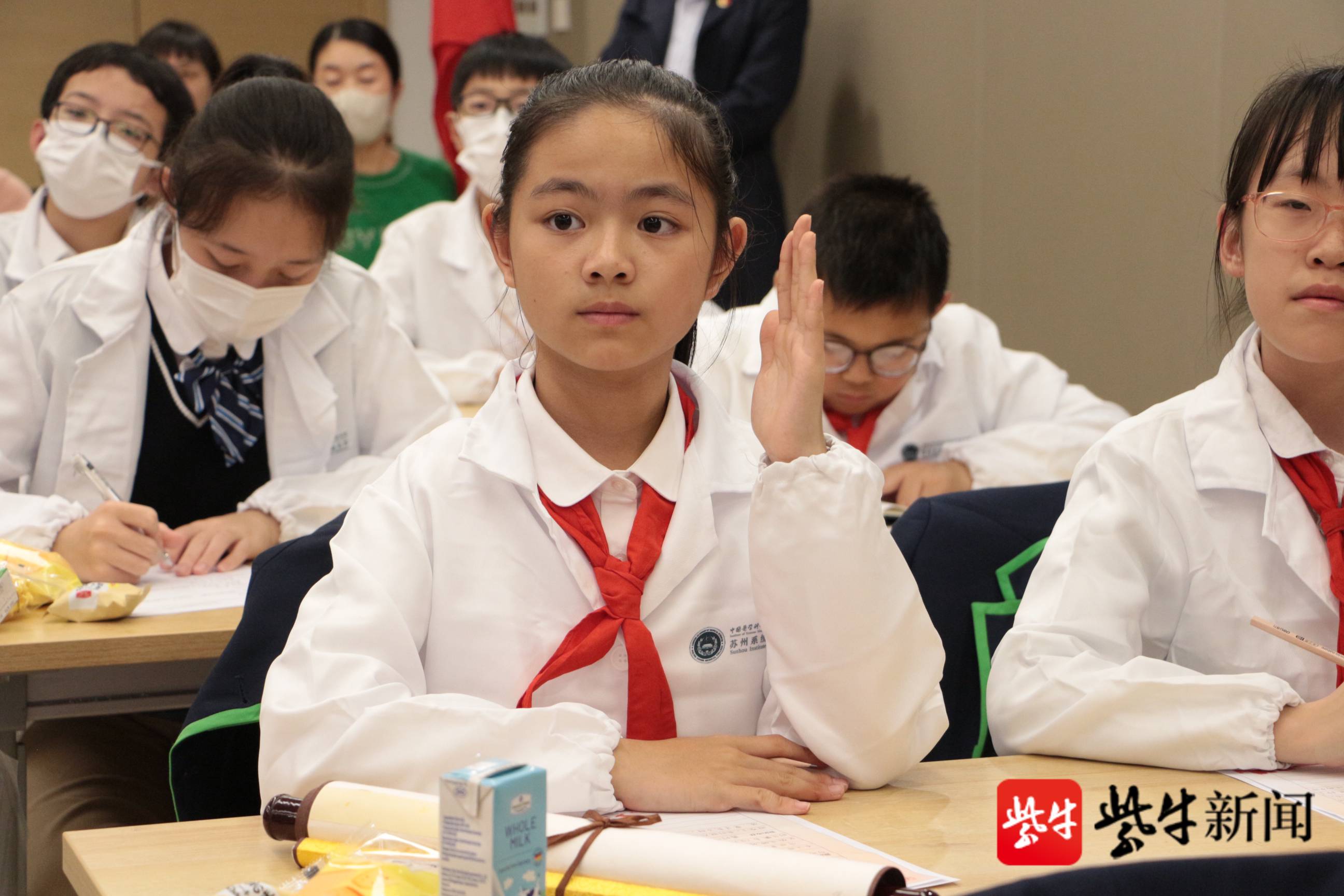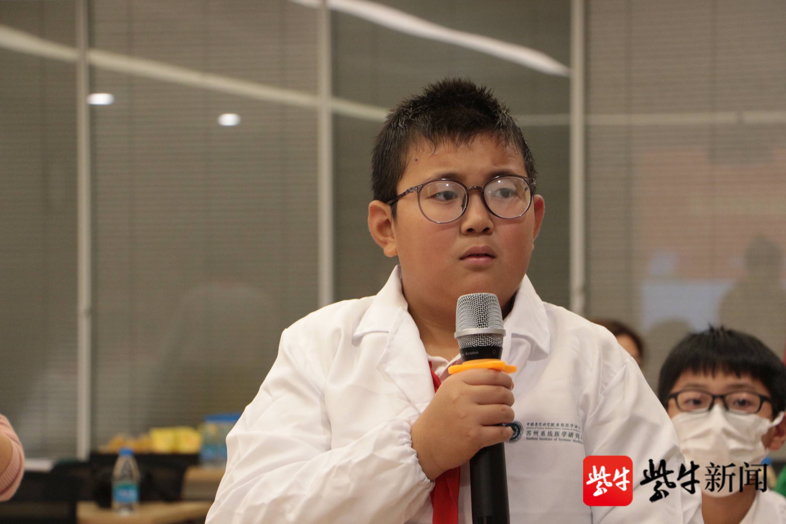 当天下午4点,在中国医学科学院系统医学研究院苏州系统医学研究所内,南师大苏州实验学校的孩子们身着研究服,手执提前准备好的采访提纲,正襟危坐等待正式“采访”中国医学科学院系统医学研究院研究员、执行副院长、免疫平台主任马瑜婷。马瑜婷老师刚一出场,全场便响起热烈的掌声。