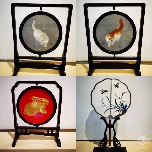 双面绣的异色猫,江南水乡的双面绣屏风,还有具有浓浓新年氛围的刺绣盘金小金兔、和盘金绣的福字双面绣......不仅有代表苏绣的经典作品,还有喜庆且寓意美好吉祥中国年的作品。为了更好的展示苏绣魅力,讲好中国故事,第一批国家级非物质文化遗产项目,苏绣代表性传承人姚惠芬精心准备了一份“大礼包”和海外的观众们见面。