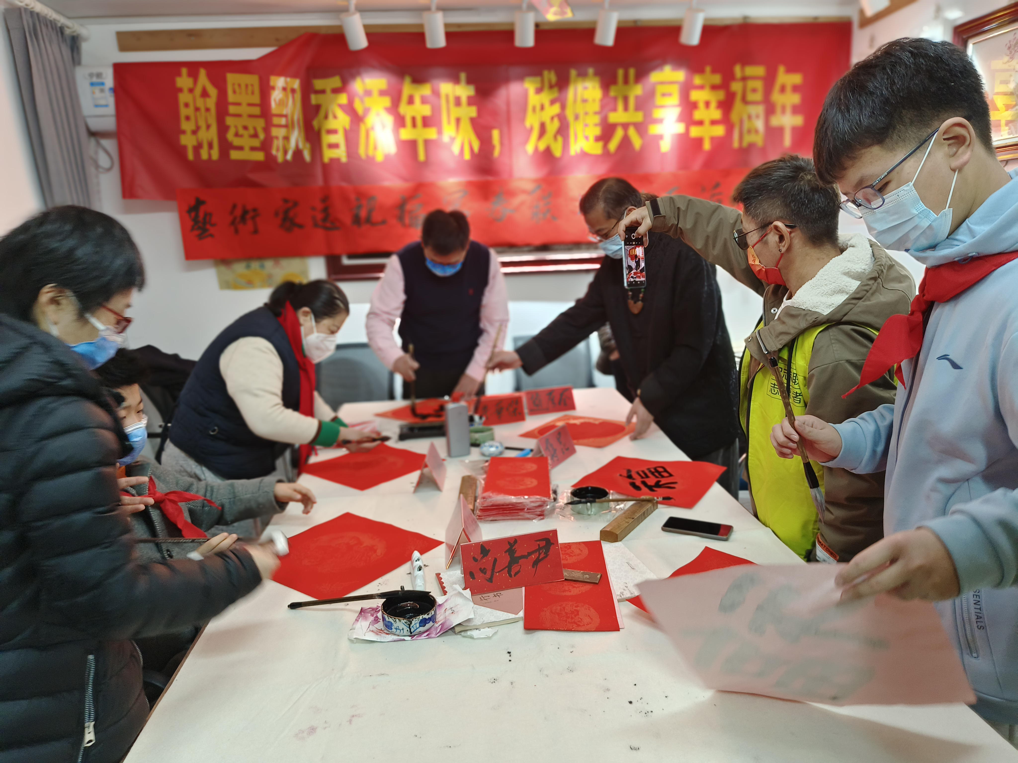 年关将近,年味渐浓,日前,为弘扬春节传统文化,增强节日氛围,支付宝“蓝马甲”携手扬子晚报走进鼓楼区江东街道瓷缘残疾人之家,开展了“翰墨飘香添年味,残健共享幸福年”——迎春送福助老反诈活动。
