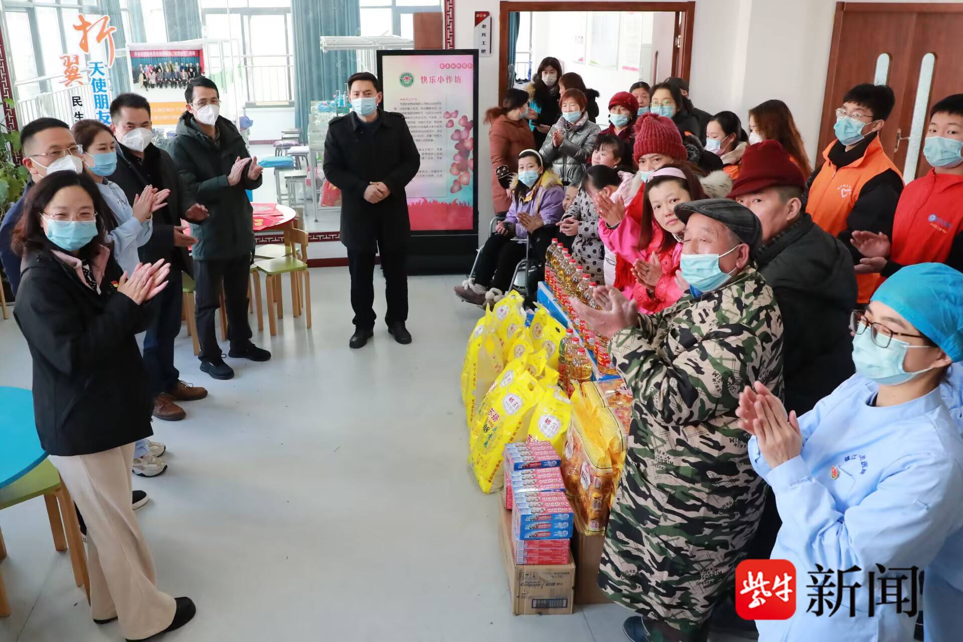 扬子晚报网1月18日讯 (通讯员 戴勇 高雨 记者 万凌云)屋外寒风刺骨,屋内春意融融。1月17日下午,镇江润州区残联、镇江市口腔医院、江苏金创网络工程公司、一分钟公益团队的爱心人士,联手开展“暖心行动一一关爱社区残障人士”活动。他们走进镇江迎江路中心社区残疾人中心,为社区残障人士送去价值3000余元的大米色拉油和牛奶等慰问品,并送上新春祝福。