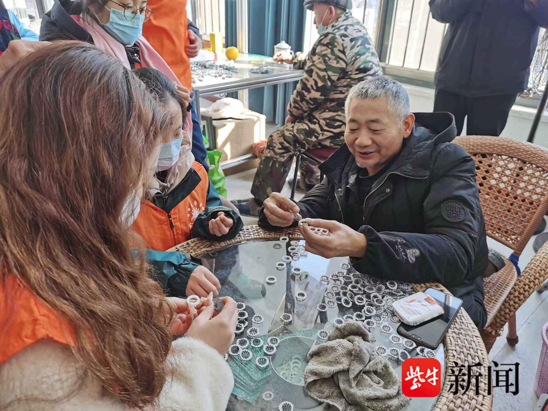 “小零件中间是一个圆形的小铁片,用两边圆形塑料小圈压上去,我一分钟只能做一个。”童言说,“小零件看似简单,做好却非常不容易。”得知刘根章一天可以做2000个。志愿者们都表示惊讶。