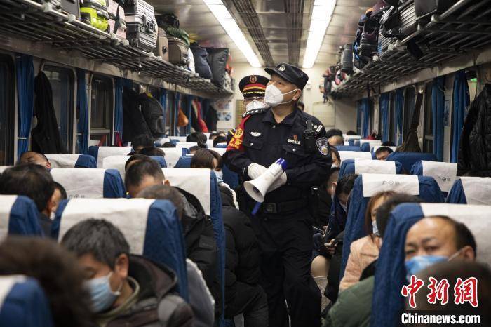 广州铁路公安处乘警在列车上巡逻宣传 广州铁路公安处 供图