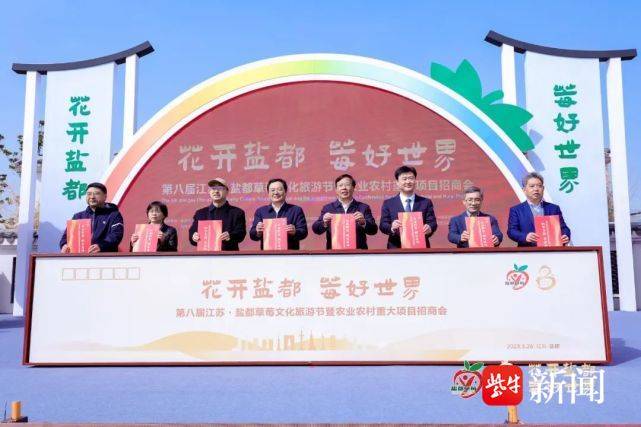 扬子晚报网3月28日讯(通讯员 黄艳 记者 )阳春三月,莓果飘香。3月26日,第八届江苏(盐都)草莓文化旅游节暨“花开盐都 莓好世界”农业农村重大项目招商活动,在盐都现代农业产业示范园内拉开大幕。来自全国各地的业界专家欢聚一堂,以“莓”为媒,共话发展。