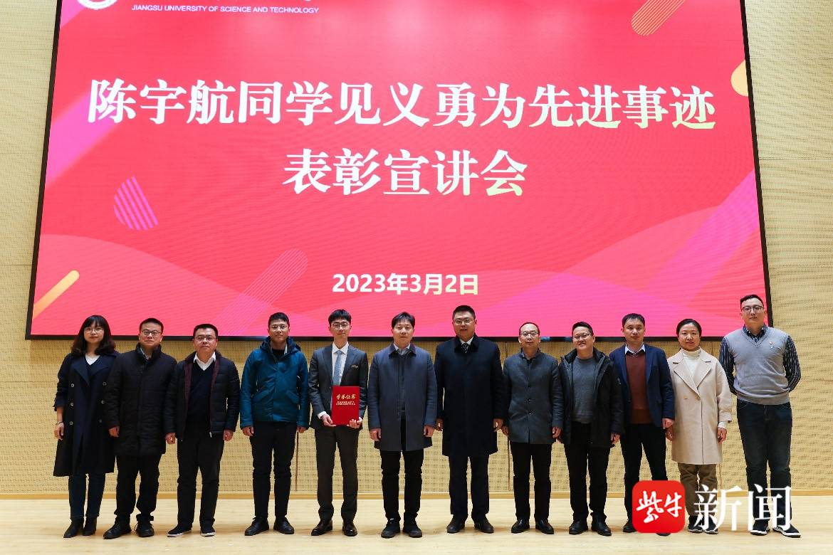 陈宇航在紧要关头临危不惧、挺身而出,以平凡之躯行英雄之事,用担当和行动展现了江苏科技大学青年学子高尚的道德品质和积极向上的精神风貌。他的见义勇为事迹也引发社会广泛关注,包括人民日报、央视新闻、扬子晚报紫牛新闻等多家权威媒体,对其进行了报道。