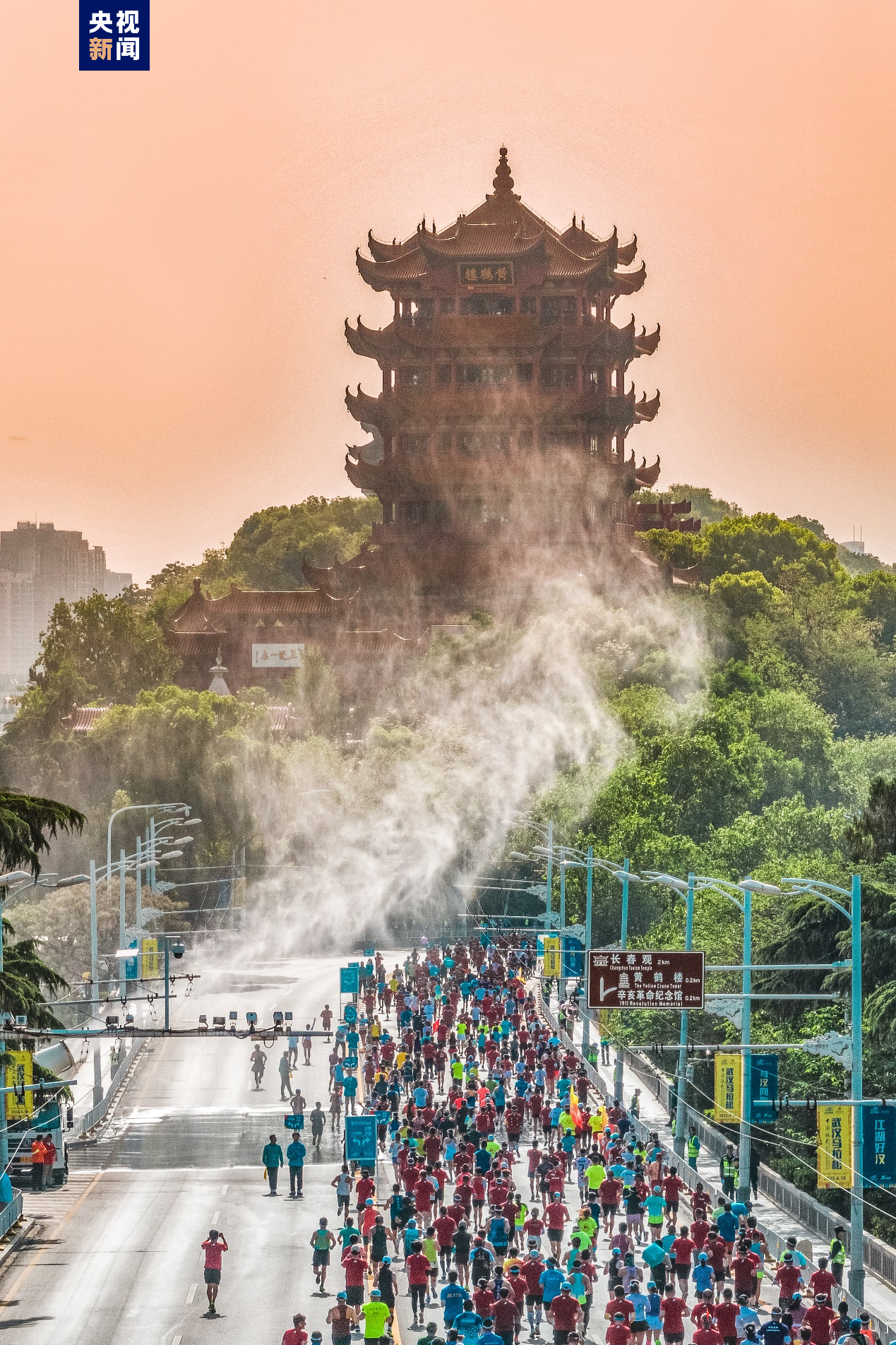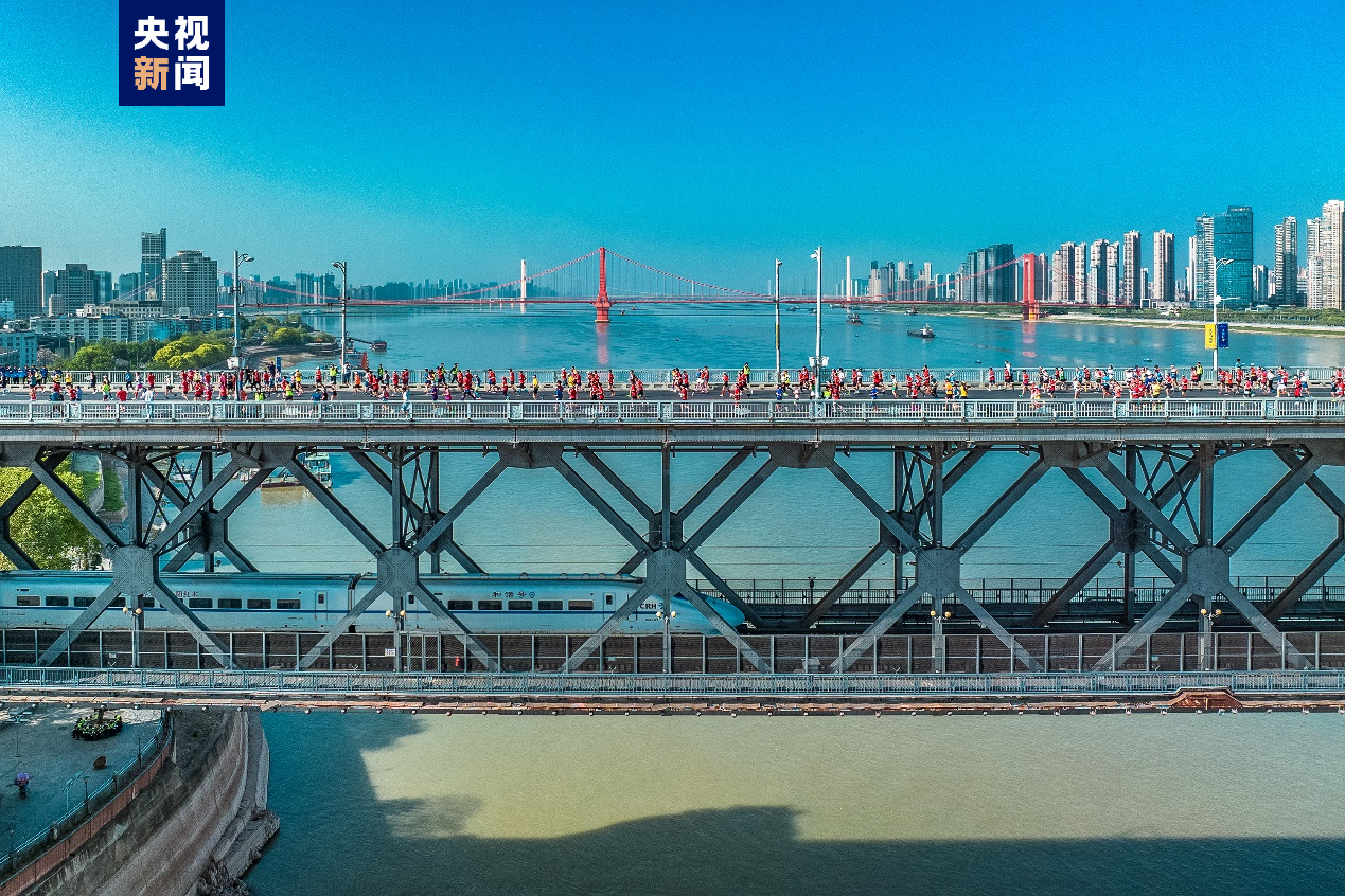 4月16日,2023武汉马拉松鸣枪起跑,来自32个国家和地区的26000名跑者参加本次马拉松赛。