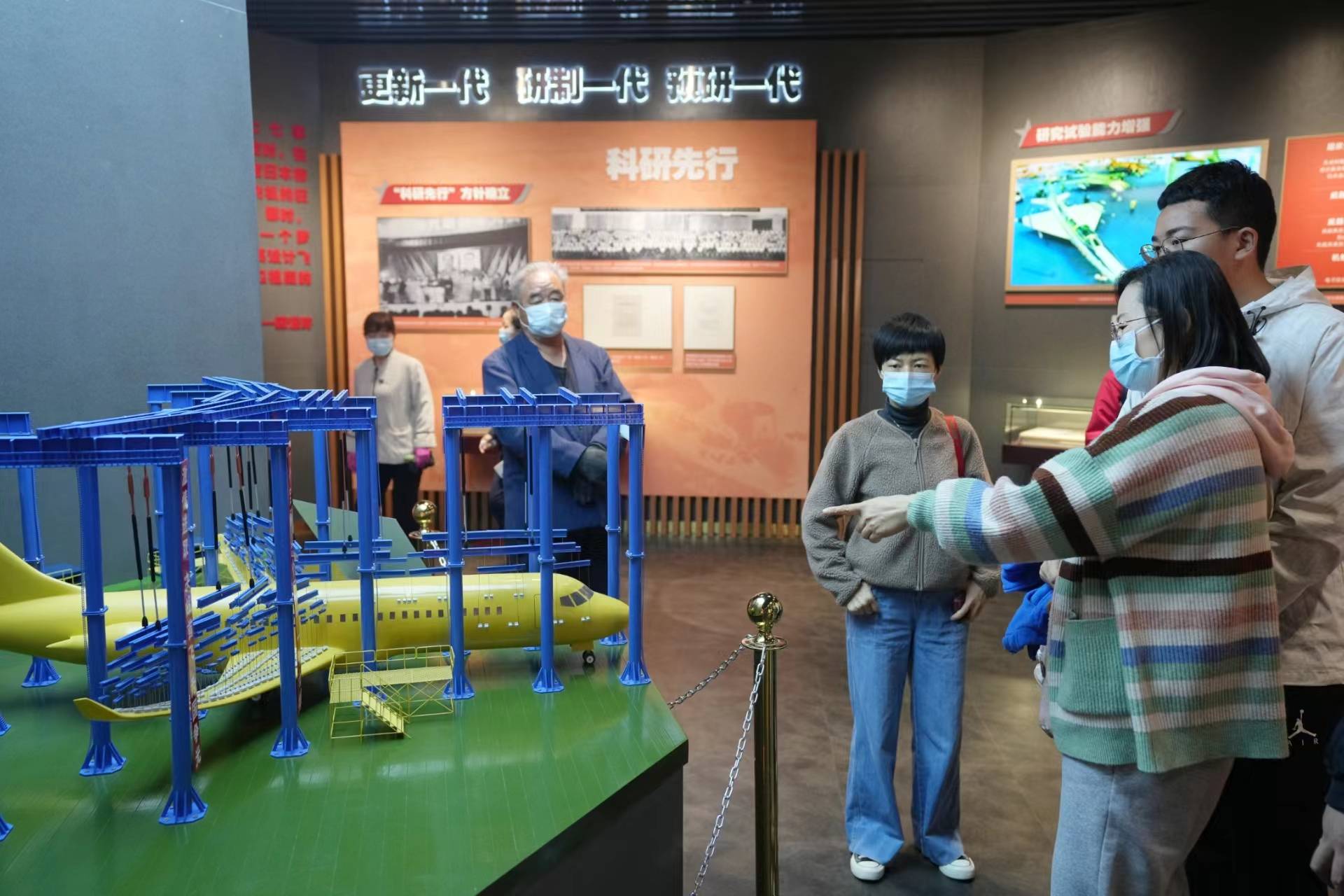刚走进大院,第一个迎接游客的展品便是“明星”机型歼-20模型,随后,歼-16、歼-10C、直-20等机型整齐地一字排开。走进馆内,C919、运-20等飞机模型飞在头顶,为满足新一代战斗机需求而改进研制的“太行”发动机等多型号航空发动机都能近距离观赏。