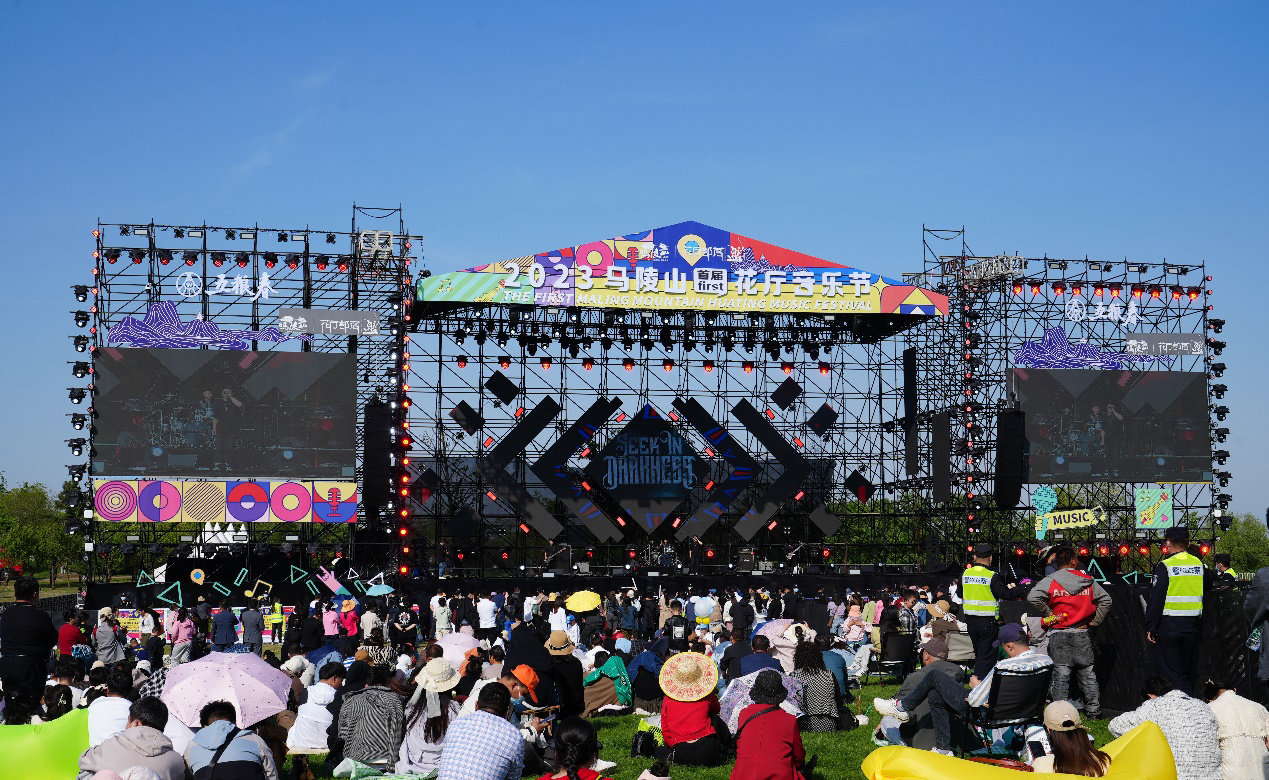 4月29日下午,在徐州新沂马陵山景区,炫丽的舞台、激越的音响、亢奋的观众,五千年花厅文明积淀与现代摇滚音乐交相辉映,2023马陵山花厅音乐节震撼启幕。