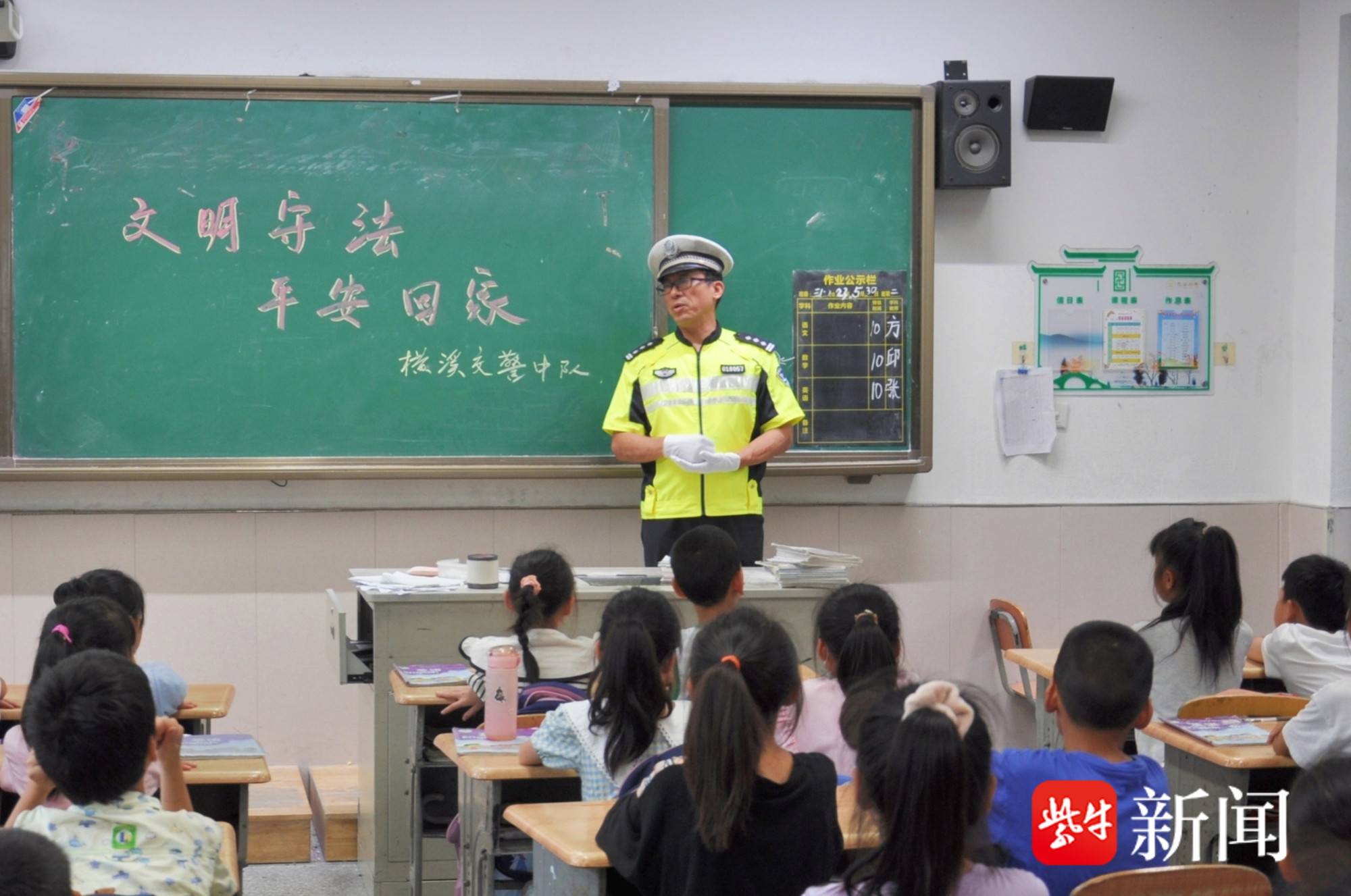扬子晚报网6月1日讯(通讯员 江公宣 记者 梅建明)“六一”儿童节到了,南京江宁横溪交警中队的民警们走进辖区的允公小学,利用这个特别的节日,向小朋友们送上了一堂特别的交通安全课,开展了以“文明守法 平安回家”为主题的宣讲活动。