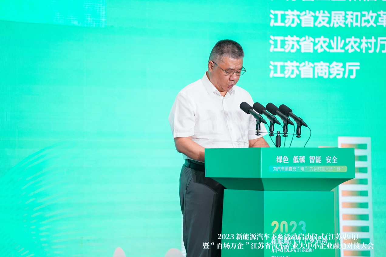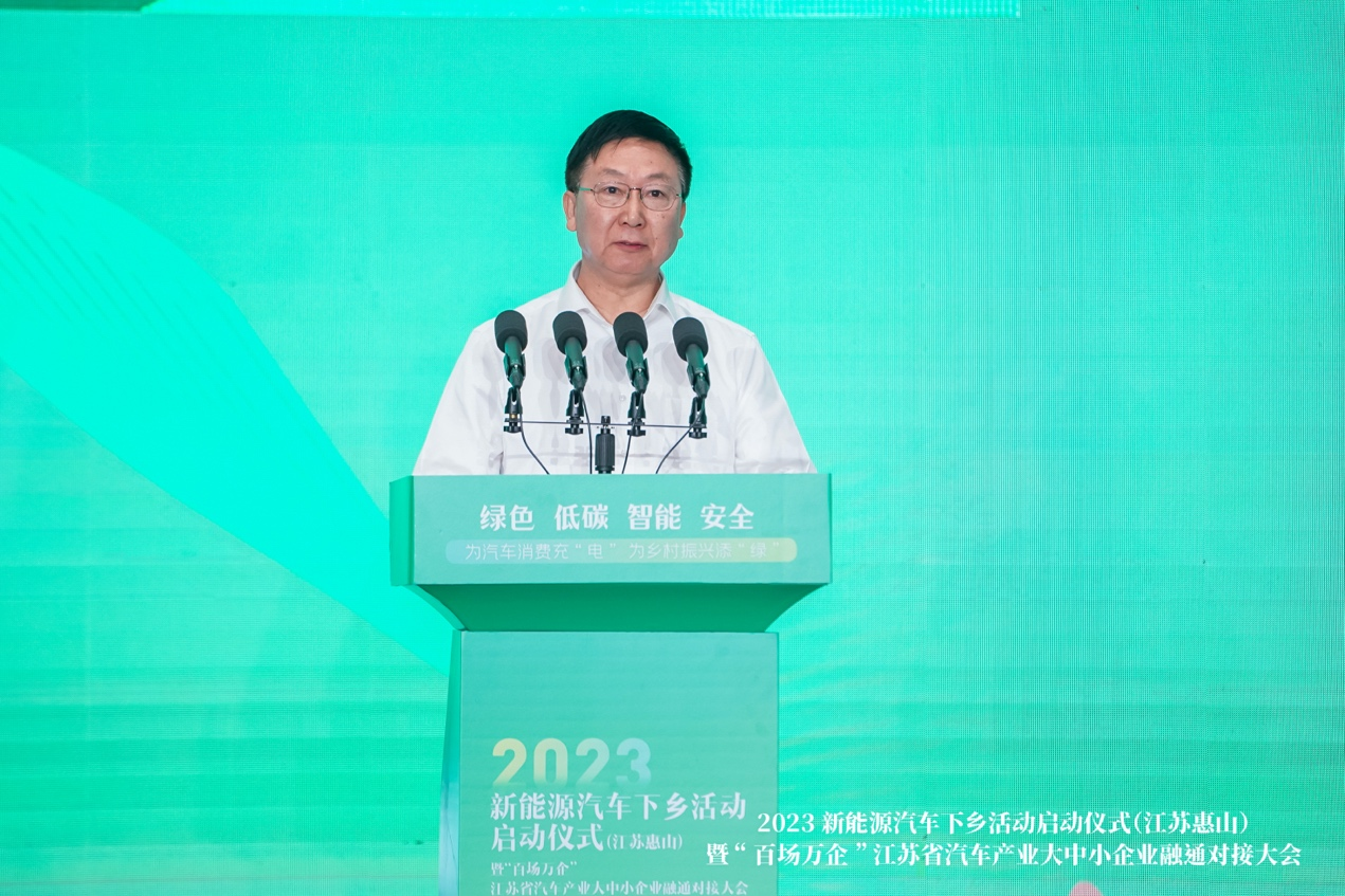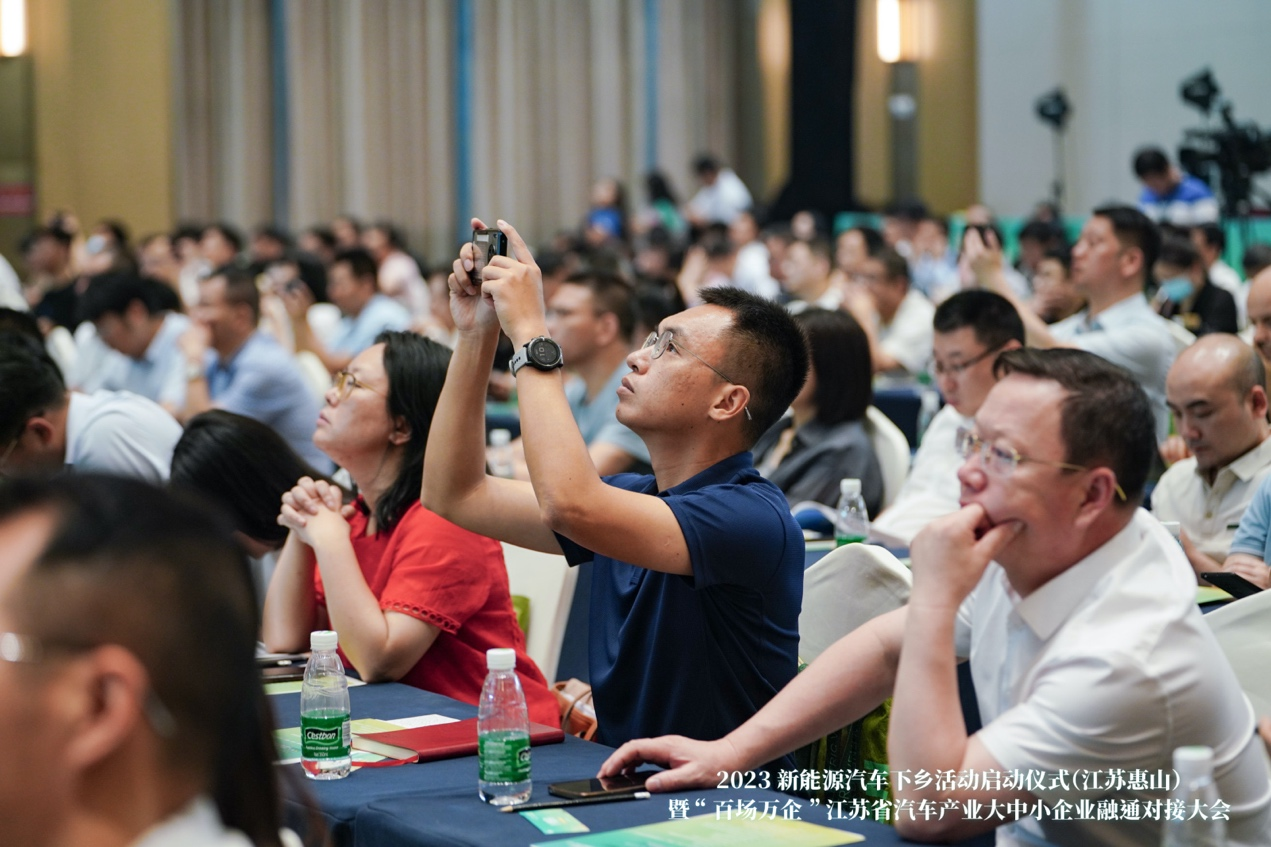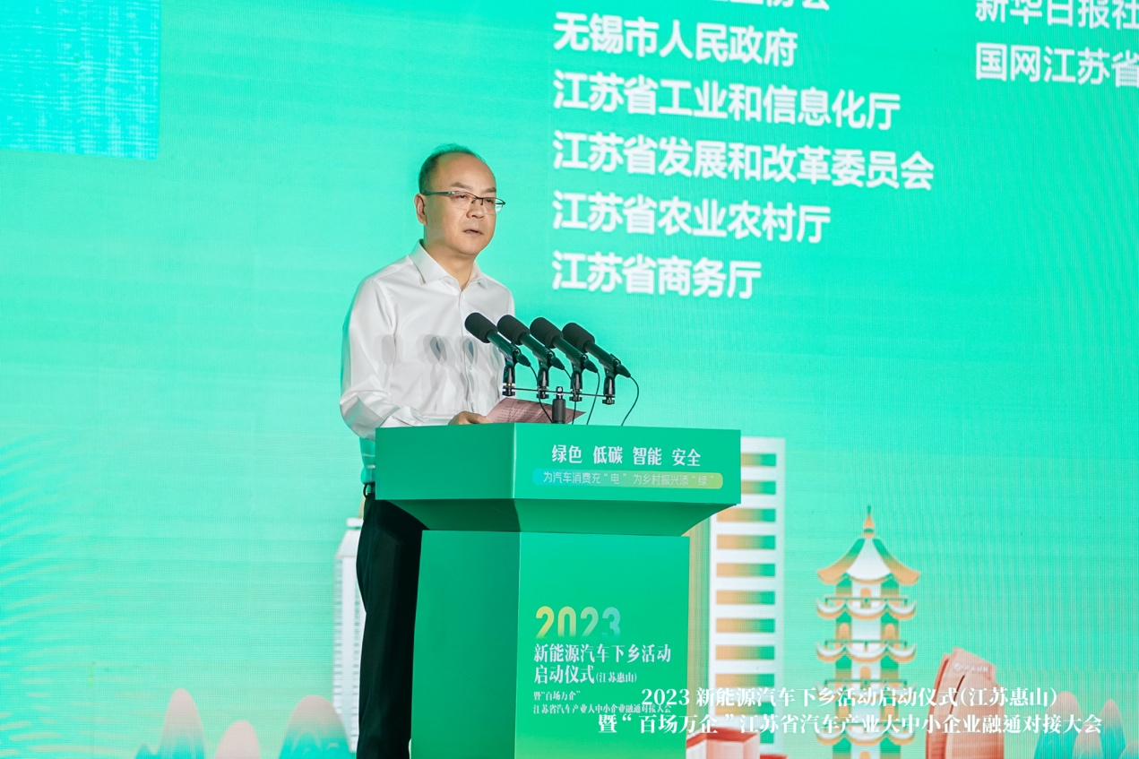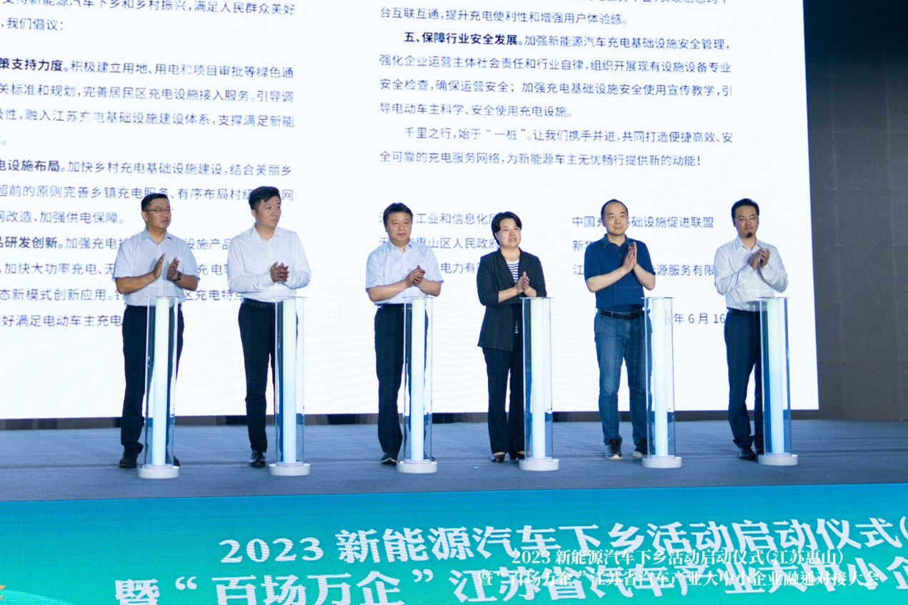 为汽车消费充“电”,为乡村振兴添“绿”。2023年新能源汽车下乡活动启动仪式(江苏惠山)暨“百场万企”江苏省汽车产业大中小企业融通对接大会,6月16日上午在无锡惠山举办。