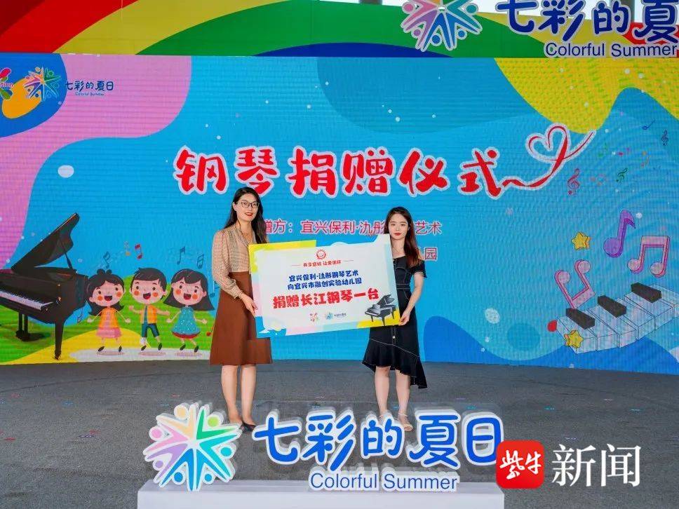 毕业于美国曼哈顿音乐学院钢琴演奏专业的硕士纪叙彤是宜城街道“小创客”少年宫辅导员,她不仅有着专业的钢琴技艺,还热心公益。回到宜兴创办了自己的钢琴教育工作室,每年定期举办公益音乐会和公益讲座,还为农村学校捐赠钢琴,是宜兴“最美青年”和“优秀志愿者”。当天的活动现场,纪叙彤向市融创实验幼儿园定向捐赠了一台钢琴,她希望让更多孩子听到更好的音乐,热爱音乐。
