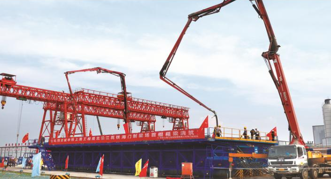 14日,中铁上海工程局北沿江高铁6标海门制梁场顺利完成首榀32米箱梁浇筑,标志着项目建设正式进入箱梁试预制生产阶段。