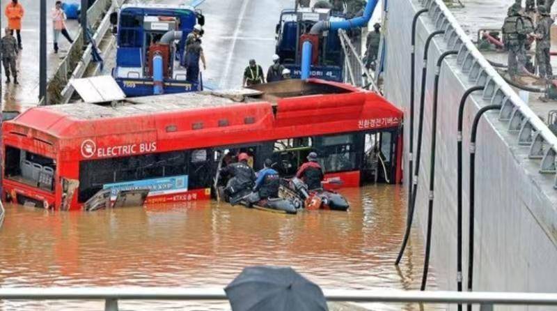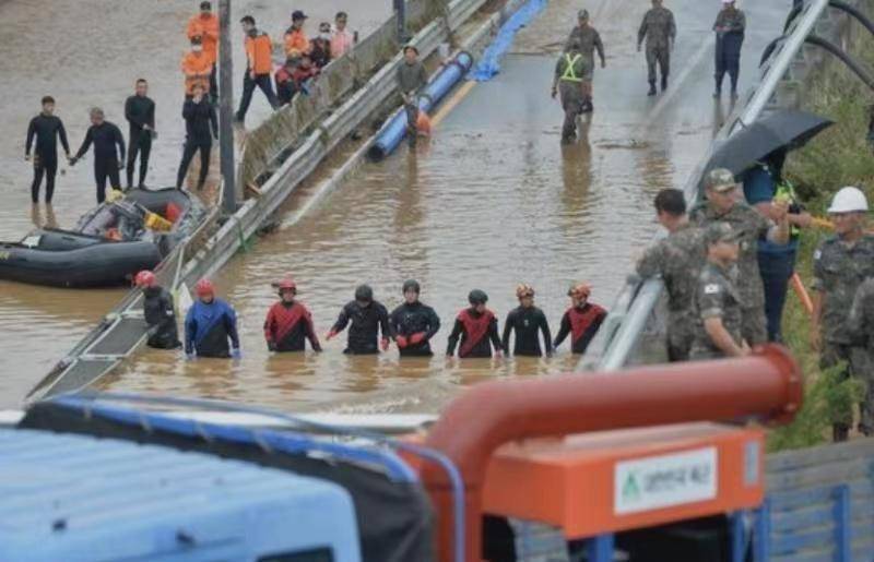 韩国暴雨一地下车道5分钟被淹14人遇难!当地居民:决口的临时堤坝是用沙子堆的