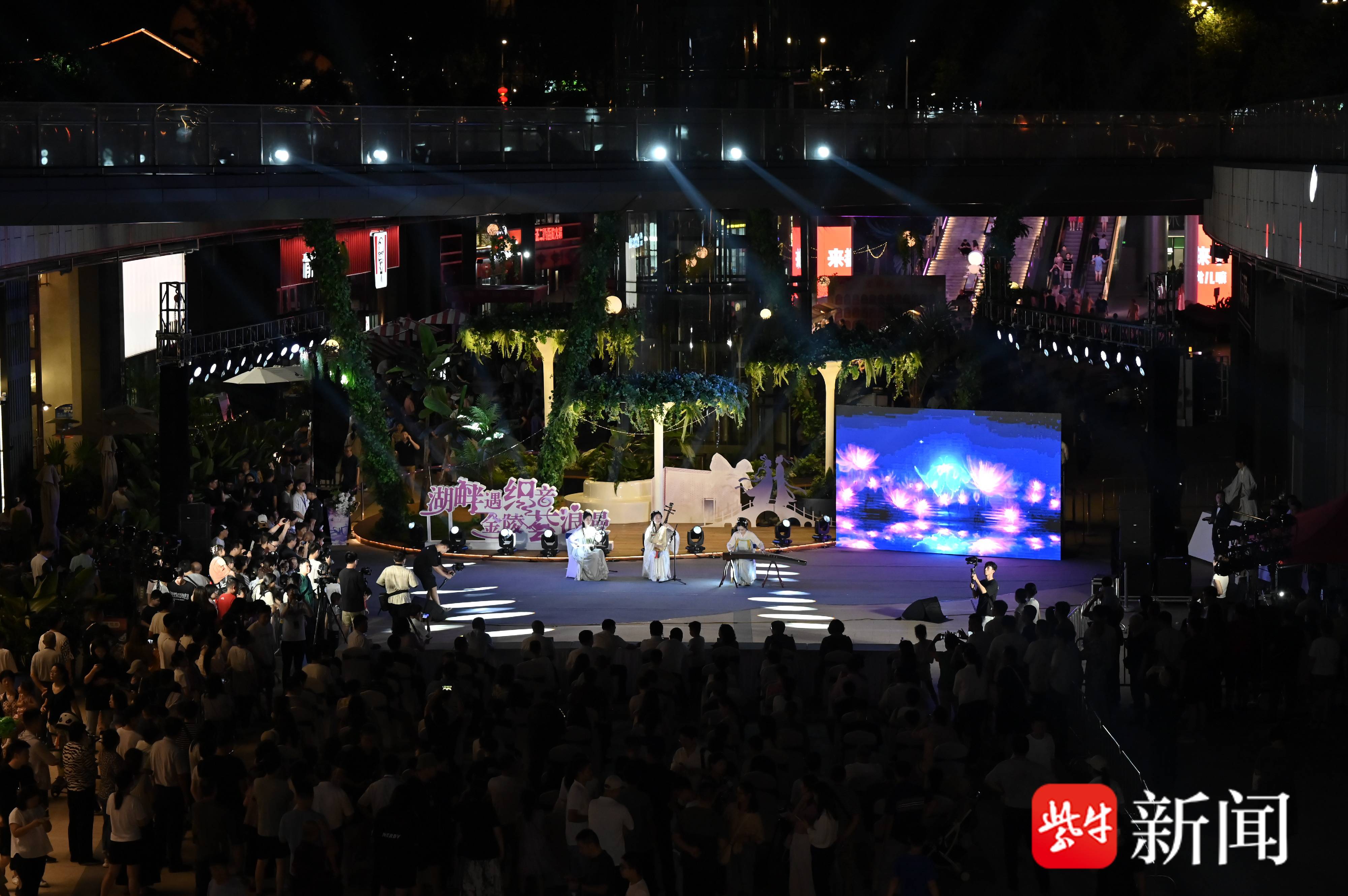 2023金陵七夕文化节以“湖畔遇织音,金陵荟浪漫”为主题,结合金陵STYLE独有的“山水之境”,以夜演、夜购、夜游等形式创新视听和消费体验,在弘扬优秀传统文化的同时,进一步丰富环玄武湖夜间消费场景,点亮最美夜金陵。活动现场,金陵STYLE充分利用下沉式广场与玻璃栈桥的空间优势,融合民乐、舞蹈等七夕元素,呈现了一场古风古韵和现代气息互相融合的视听盛宴。