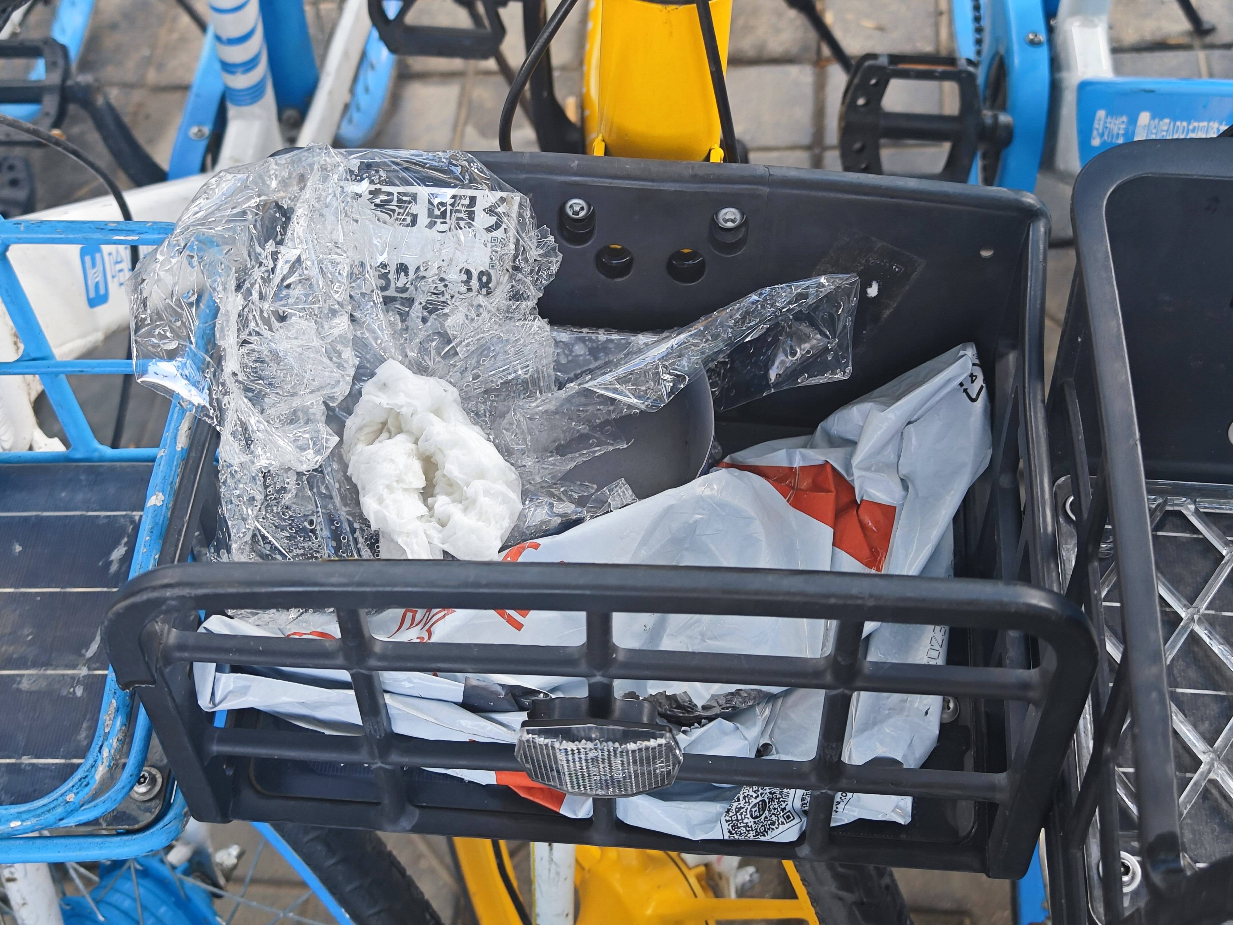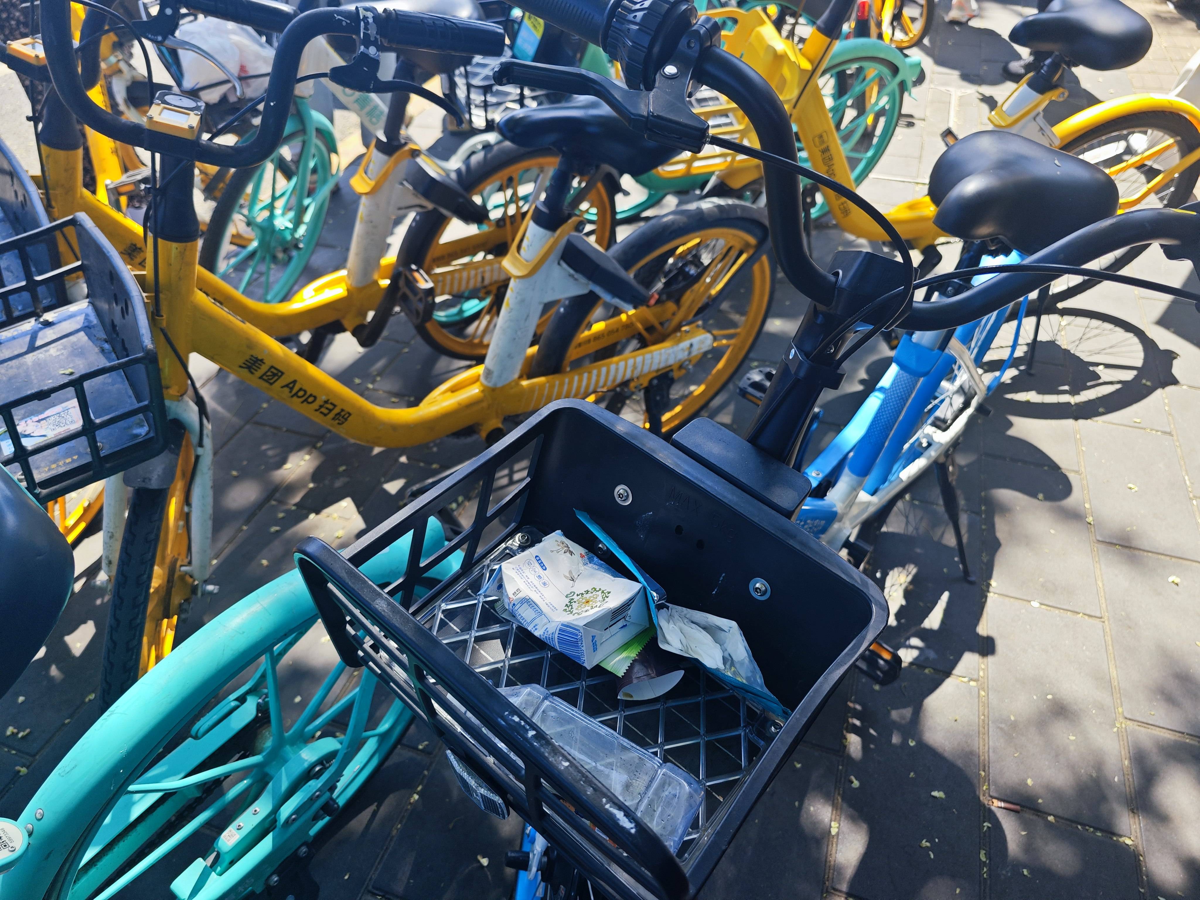 餐盒、塑料瓶……共享单车车筐咋成了“移动垃圾桶”?
