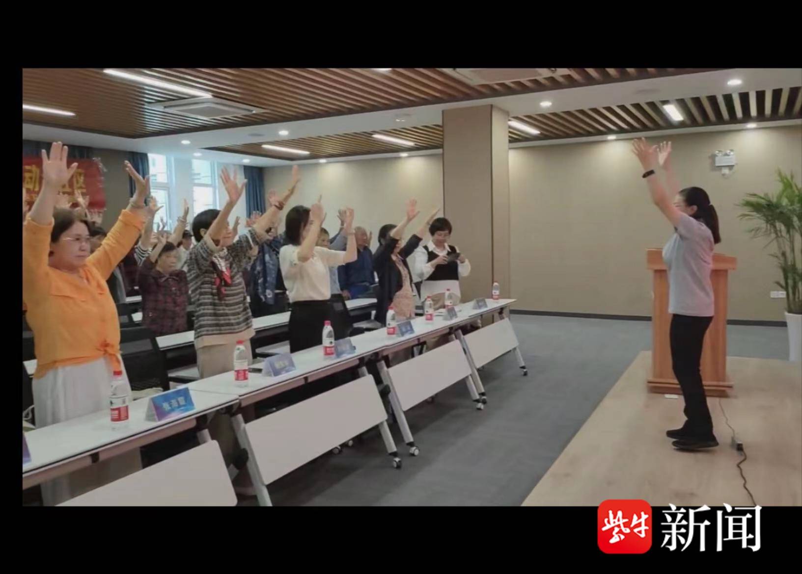 在互动环节,音乐照顾师向春燕带领老年朋友们体验“音乐照顾”。向老师选择了适合老年人并极具趣味的曲目,带动大家随着音乐的律动舞动肢体。老人们在“音乐照顾”中获得了身心双方面的刺激,释放了自我、舞出了自信,进而达到安定情绪、愉悦心情、活化身体机能等效果。
