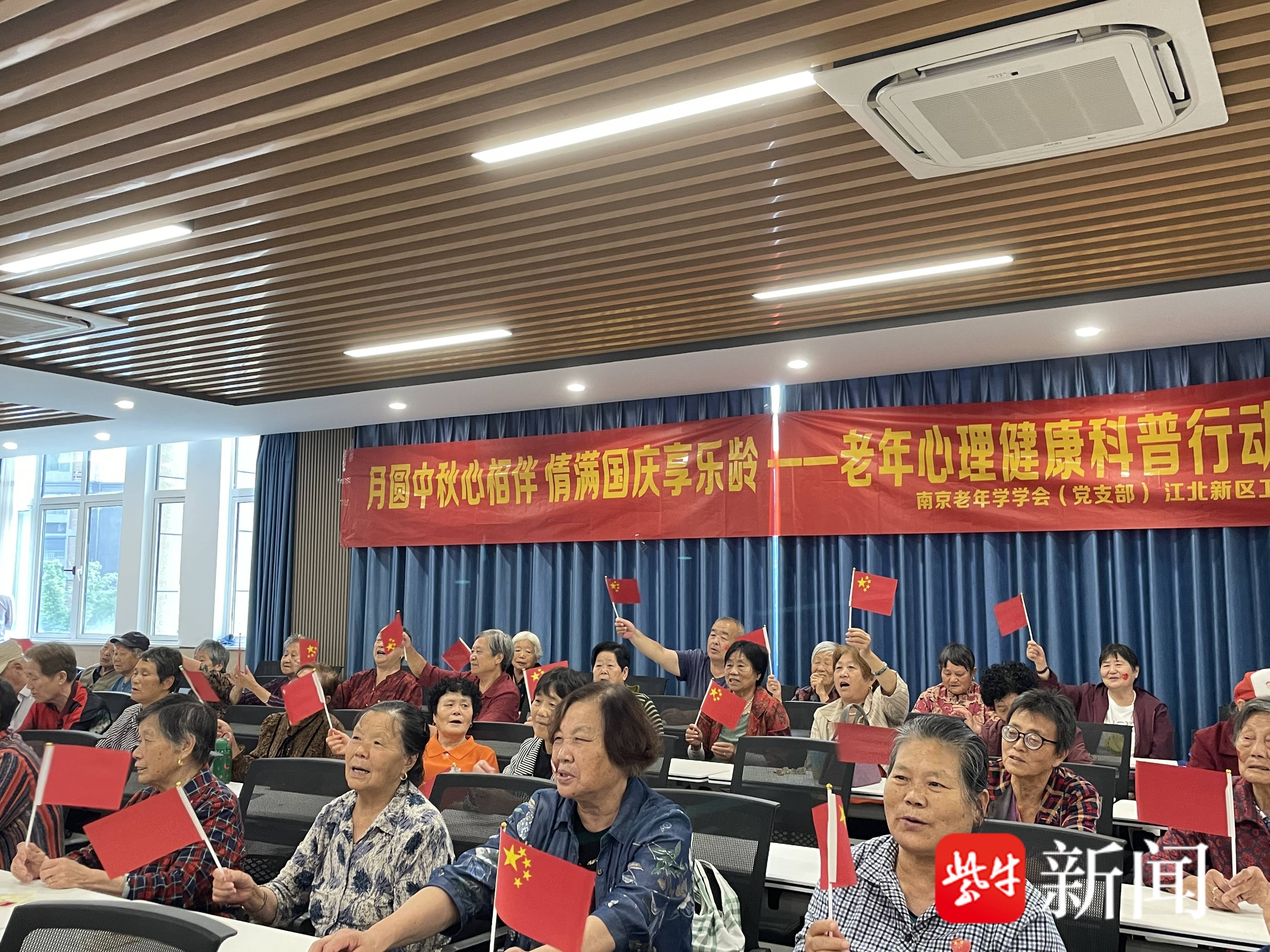 扬子晚报网9月28日讯(通讯员 金雁 记者 董婉愉)月圆中秋心相伴,情满国庆享乐龄。昨天下午,在南京江北新区民政事业服务发展基地,来自沿江街道路西社区的50多位老年人,共同参与老年心理健康科普主题活动。