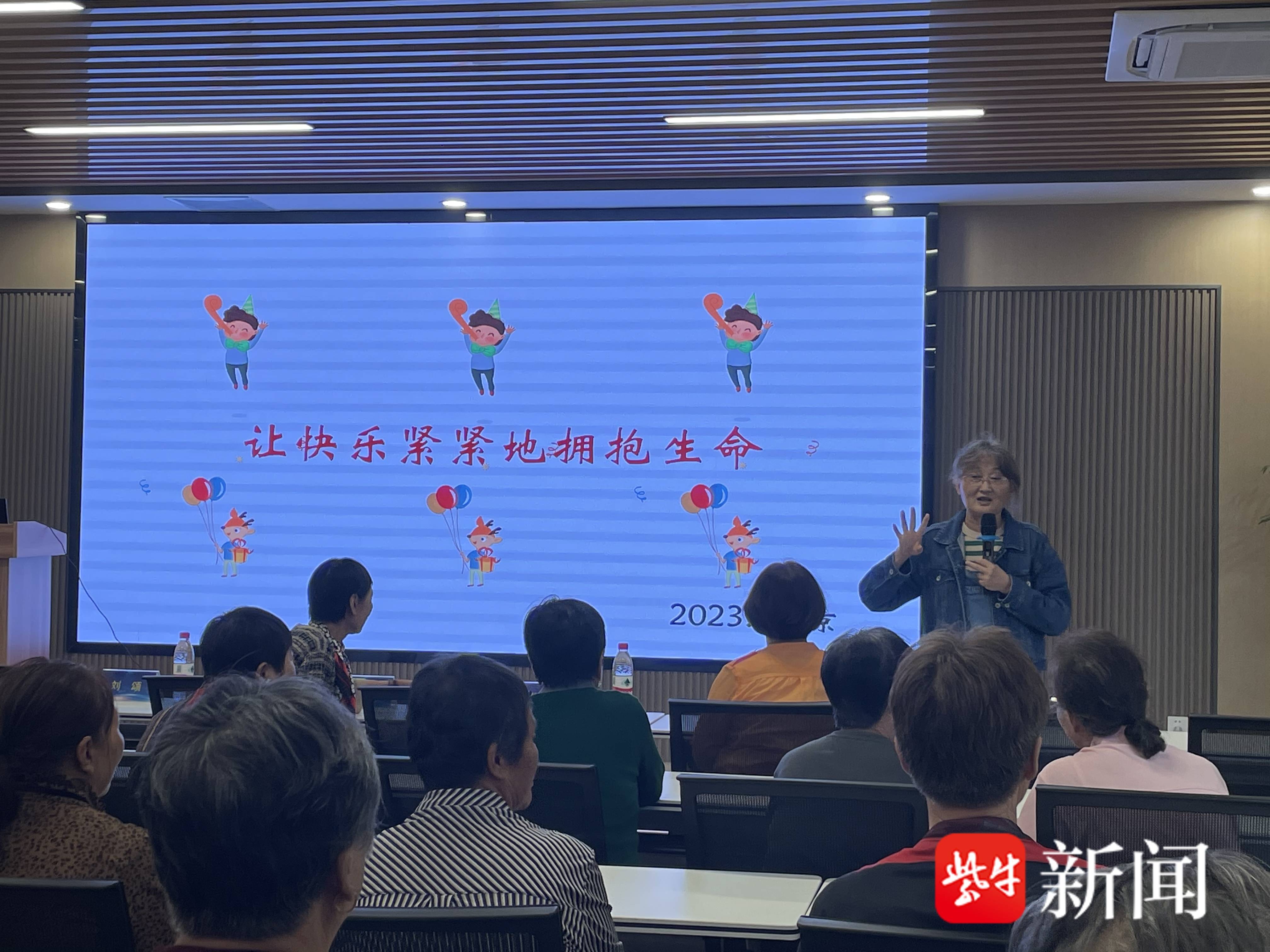 南京邮电大学退休教授刘颂女士作了“让快乐紧紧拥抱生命”的老年心理健康知识讲座。刘教授用通俗幽默的语言和互动小游戏深入浅出地讲授了保持快乐的重要性和三个妙方,引发了老人们的强烈共鸣,课堂上互动频频,笑声阵阵。