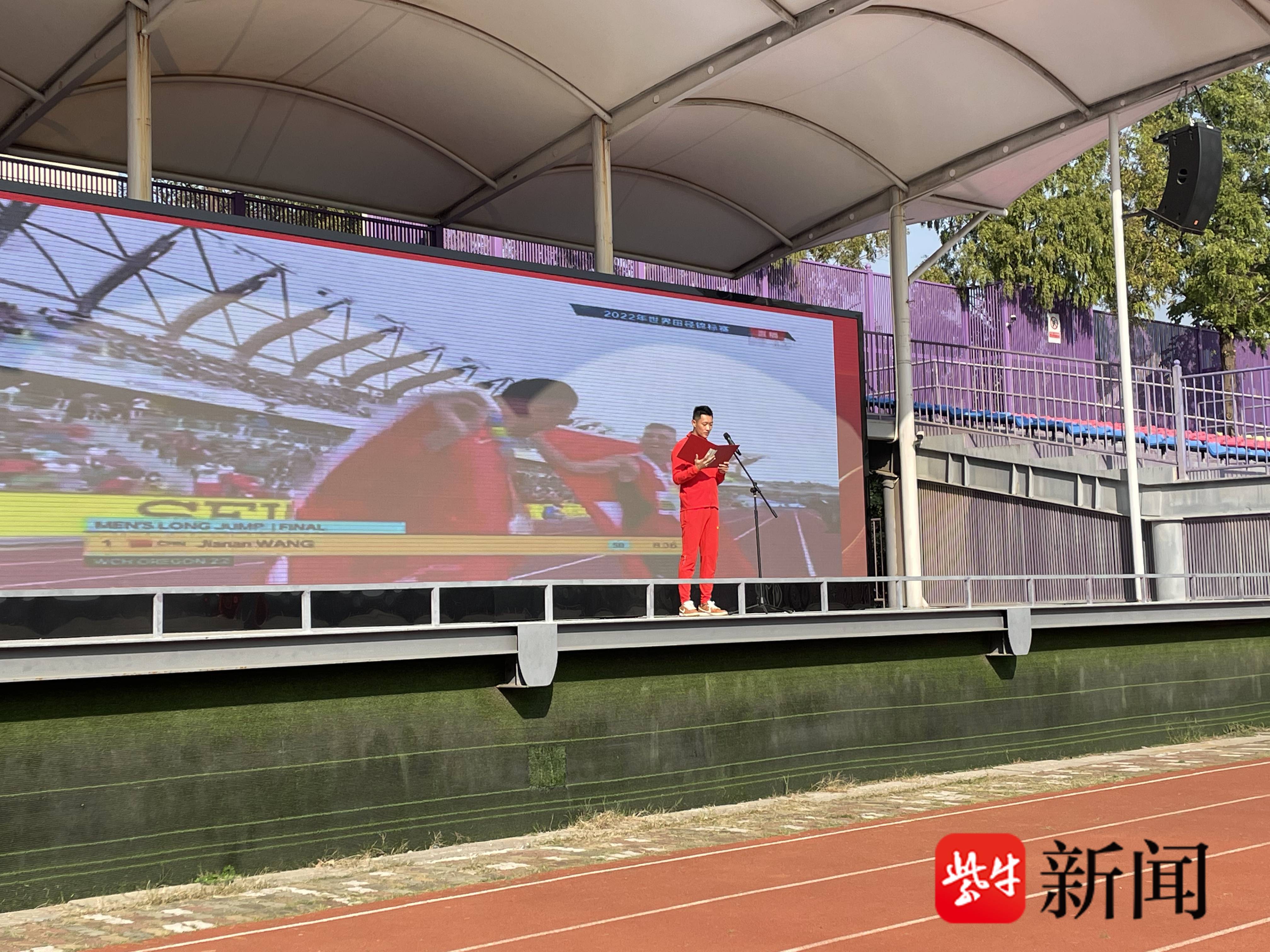 10月16日上午,田径世锦赛、杭州亚运会男子跳远冠军王嘉男走进南京一中实验学校,在学校晨会上与全校师生分享了自己运动生涯的高光和低谷时刻,并倡导年轻的学生们要科学地参加体育锻炼,从体育中汲取永不服输的奋斗精神。