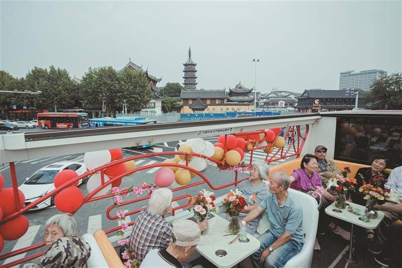 扬名街道中南社区开展“九九重阳情 金婚共白首”活动,带领老人乘坐观光巴士游览锡城,感受城市变迁。 (张嘉硕 摄)
