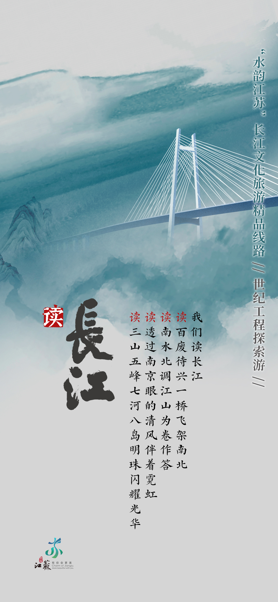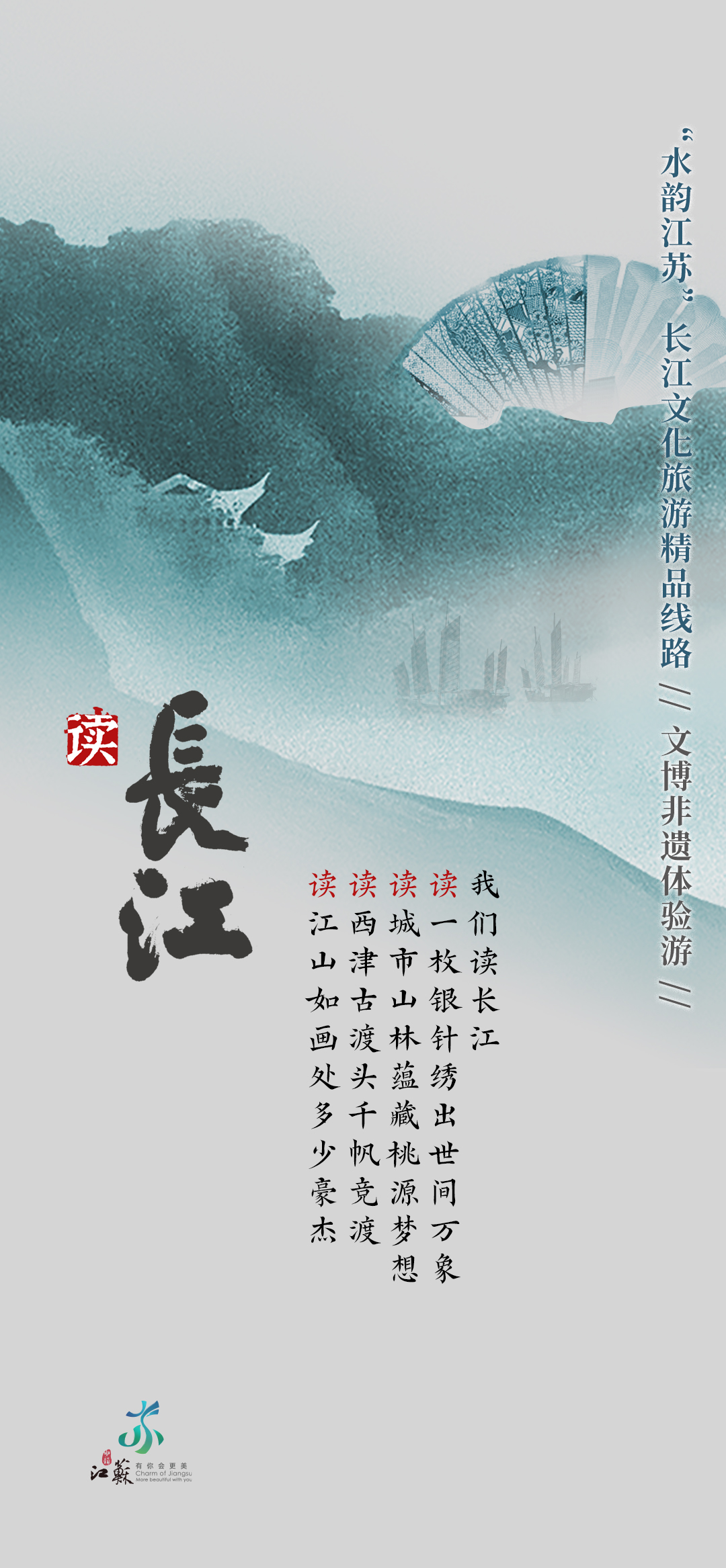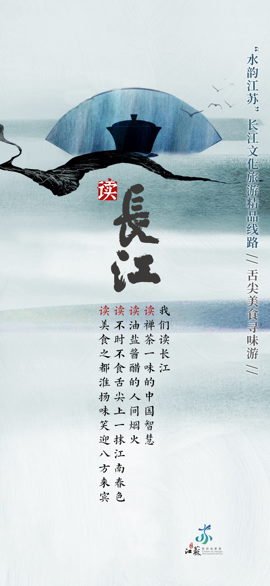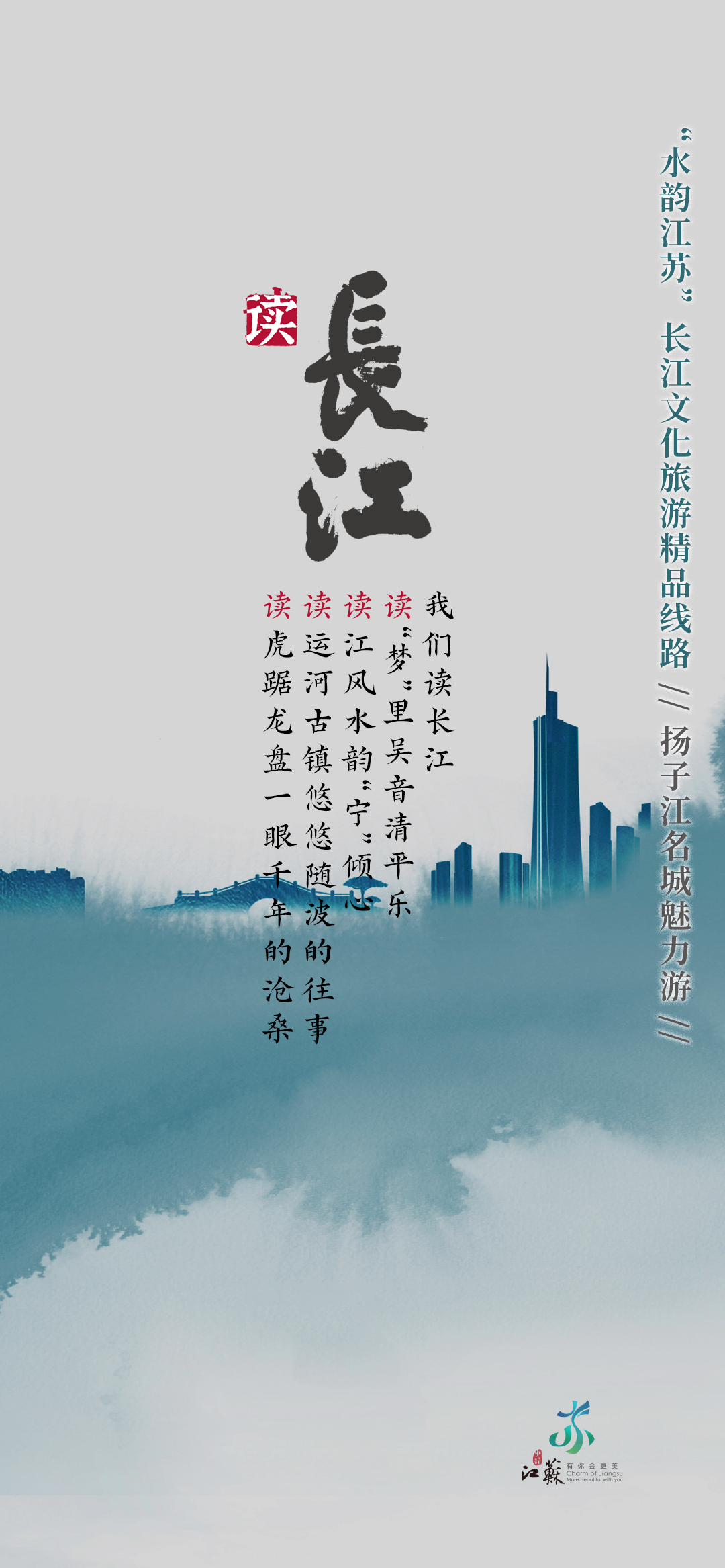 长江江苏段横贯东西433公里,具有江城相依、江河相汇、江湖相伴、江海相融的重要特征。因此,当万里长江邂逅“水韵江苏”,便生发出江城相依的美好图景、江河相汇的坚实脊梁、江湖相伴的温暖家园、江海相融的碧浪长空。同步开发的“水韵江苏”长江文化旅游精品线路h5,也为出行提供参考。
