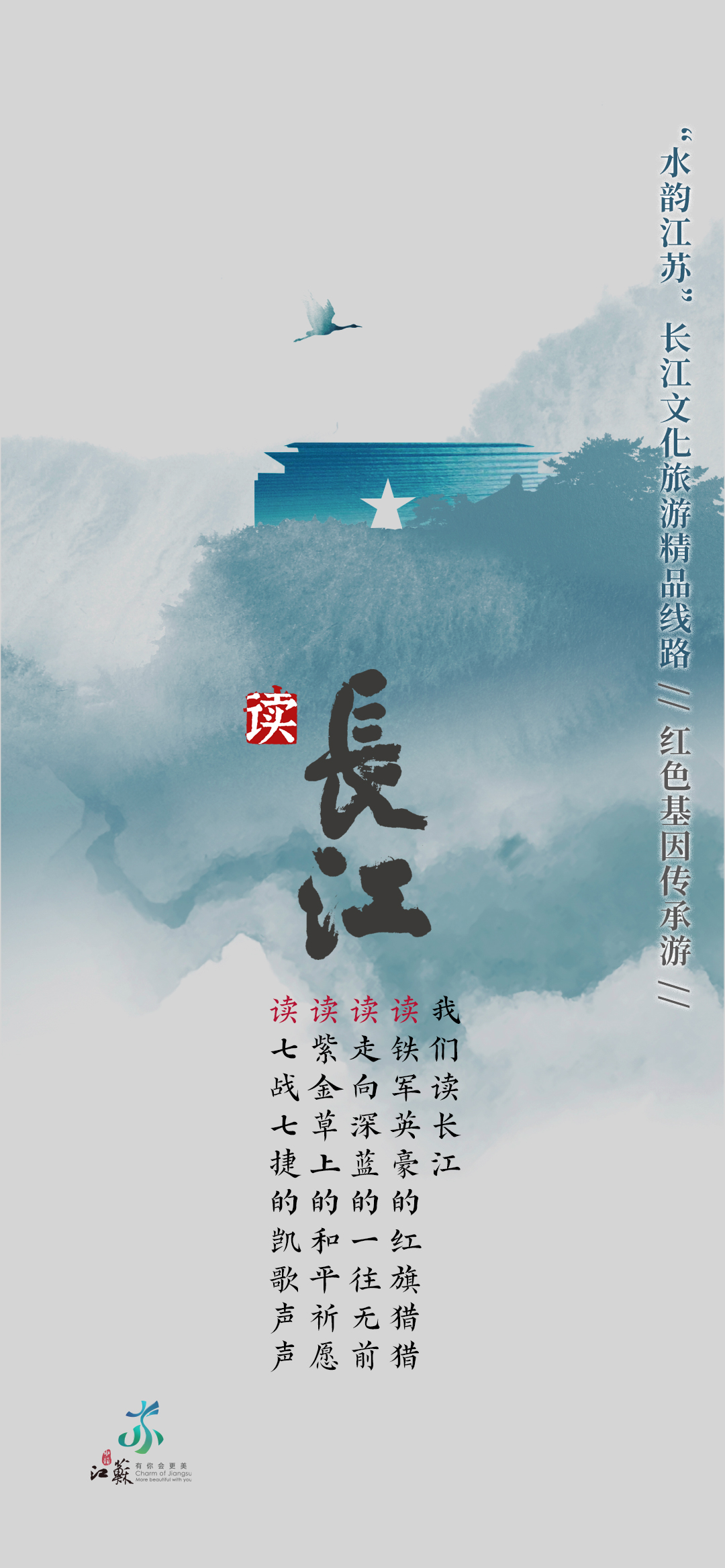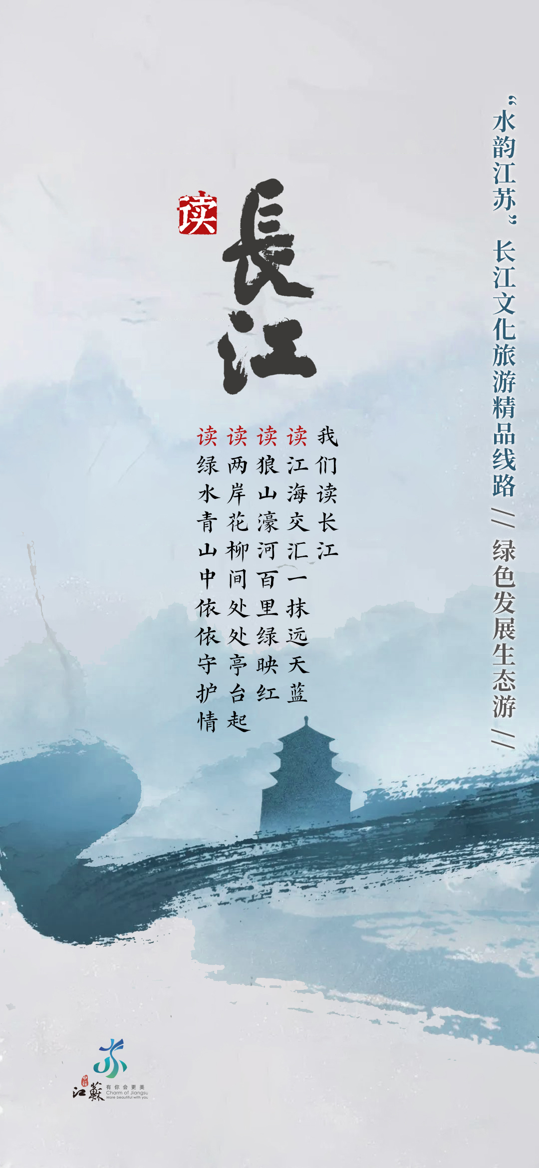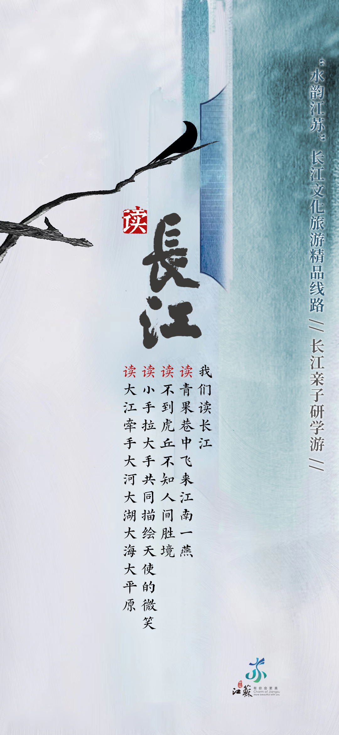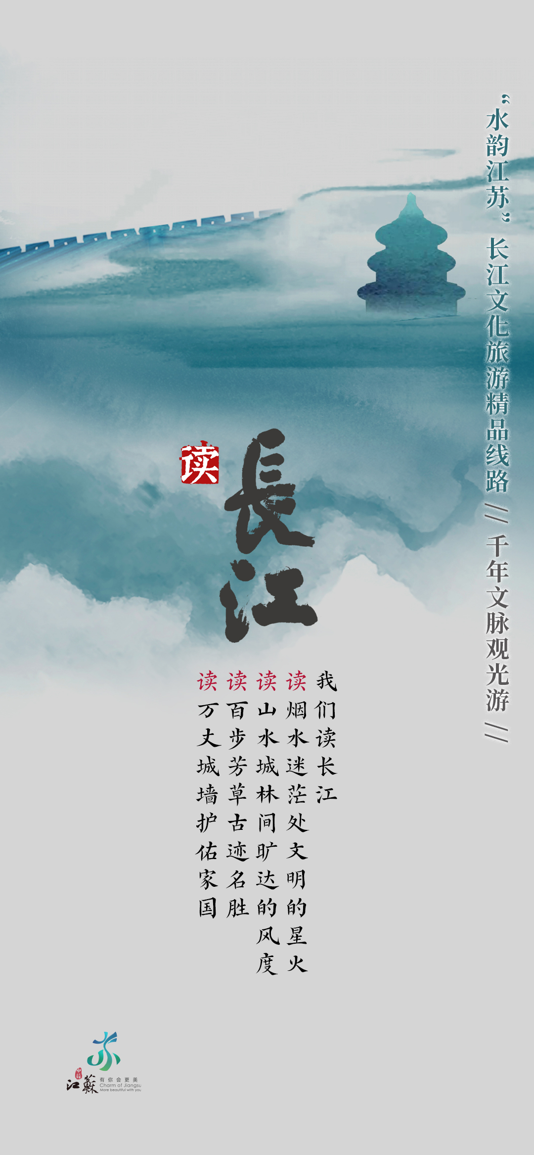 长江江苏段横贯东西433公里,具有江城相依、江河相汇、江湖相伴、江海相融的重要特征。因此,当万里长江邂逅“水韵江苏”,便生发出江城相依的美好图景、江河相汇的坚实脊梁、江湖相伴的温暖家园、江海相融的碧浪长空。同步开发的“水韵江苏”长江文化旅游精品线路h5,也为出行提供参考。