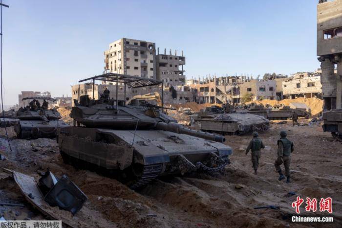 资料图:以色列装甲部队在加沙地区推进。