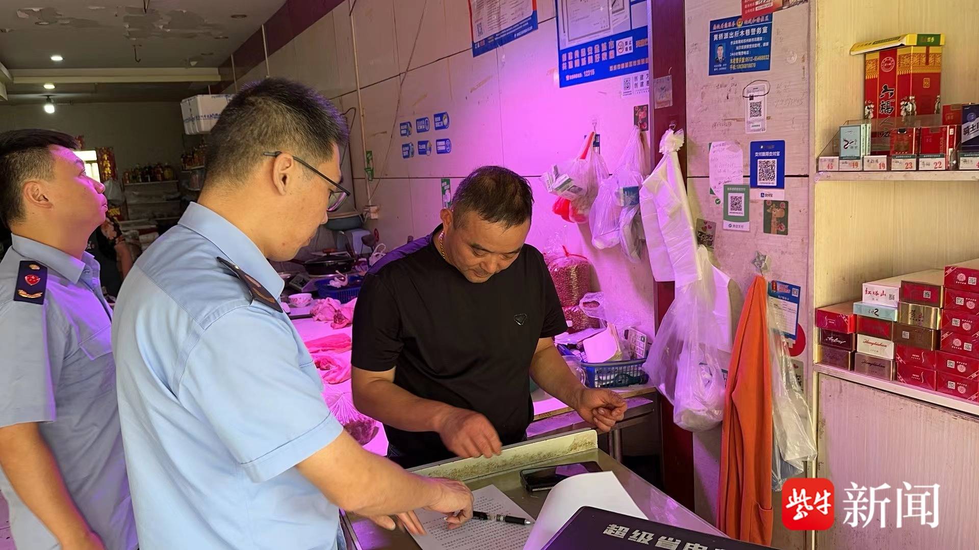 工作人员向经营生鲜农产品的商家发放了《关于销售生鲜食用农产品不得使用“生鲜灯”的提示函》,提醒商家注意对照新规要求,对自己的照明设施进行自查。如果不符合规定,商家需要在规定期限内更换照明设备。