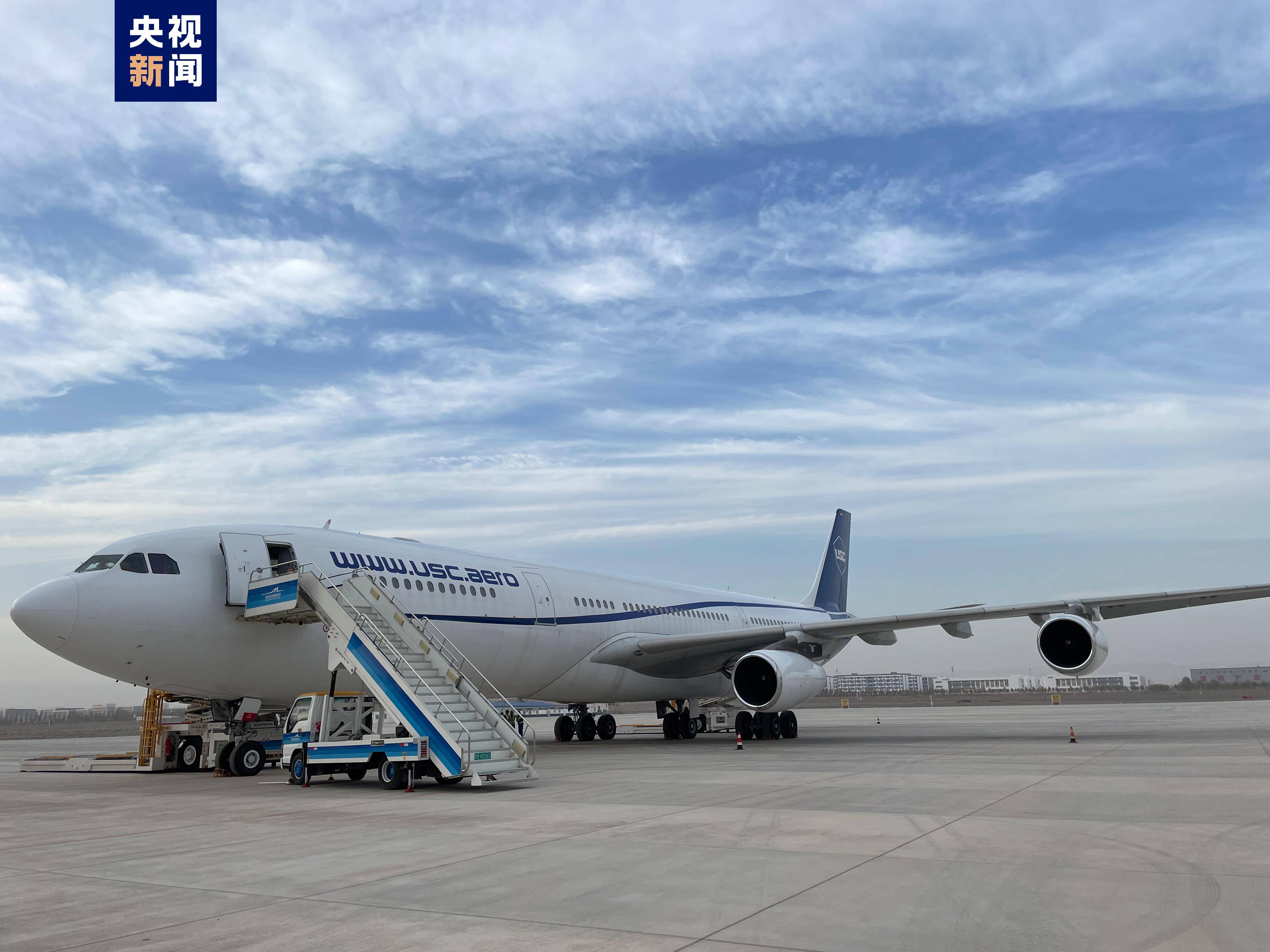 11月19日晚,一架搭载着27.43吨餐具、文具等跨境电商货物的空客A340-300客改货班机从新疆喀什飞往德国科隆。这是首趟中国喀什至德国科隆的国际货运包机,也是喀什国际航空口岸开通的第六条国际货运航线。