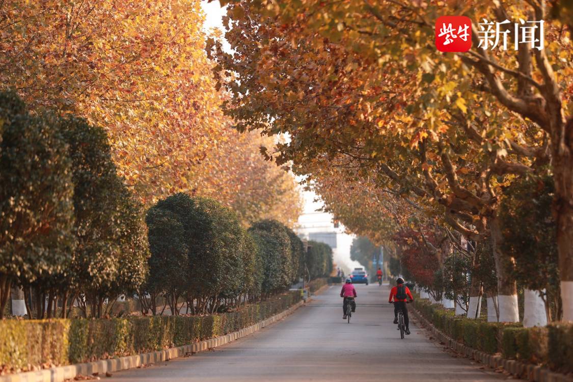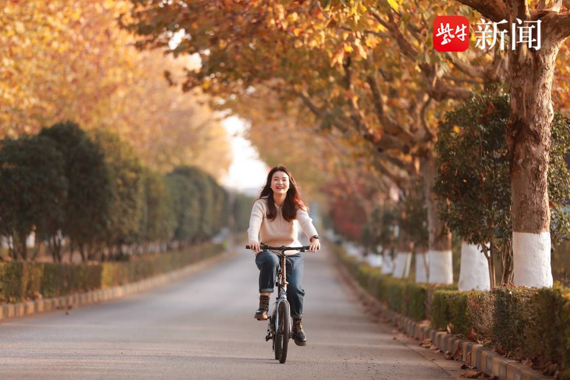 初冬时节,梧桐大道成为当地一道靓丽的风景,吸引不少人前来打卡拍照,骑行休闲。穿行在金色的梧桐树下,感受这个季节一份特有的浪漫。