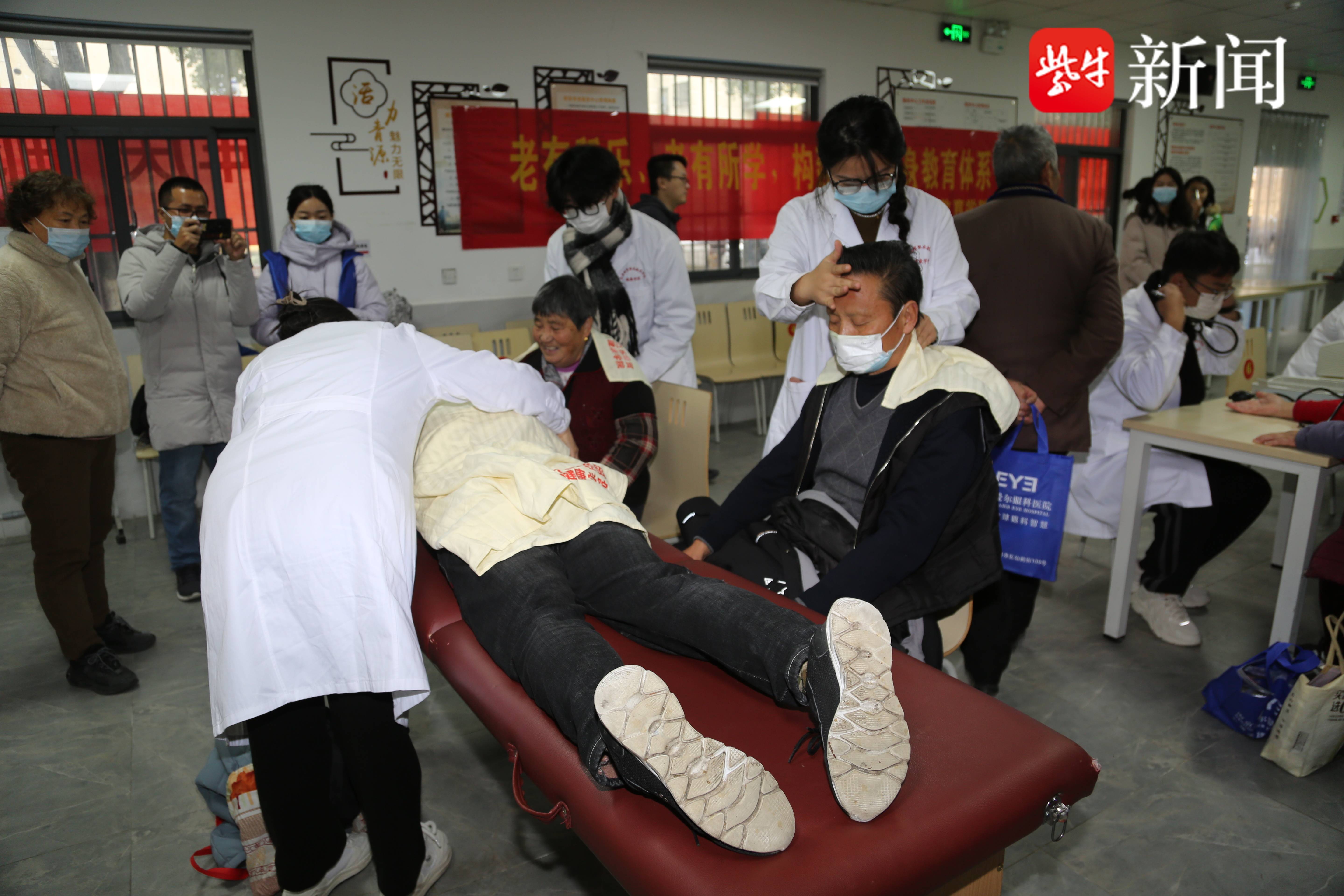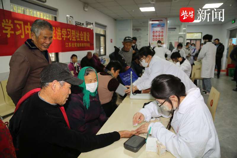 在签约仪式结束后,江苏经贸职业技术学院健康学院的学生们,加入到了当天开展的便民志愿服务当中,现场为老人们讲解穴位按摩常识、为老人量血压、测血糖,赢得居民的一致好评。