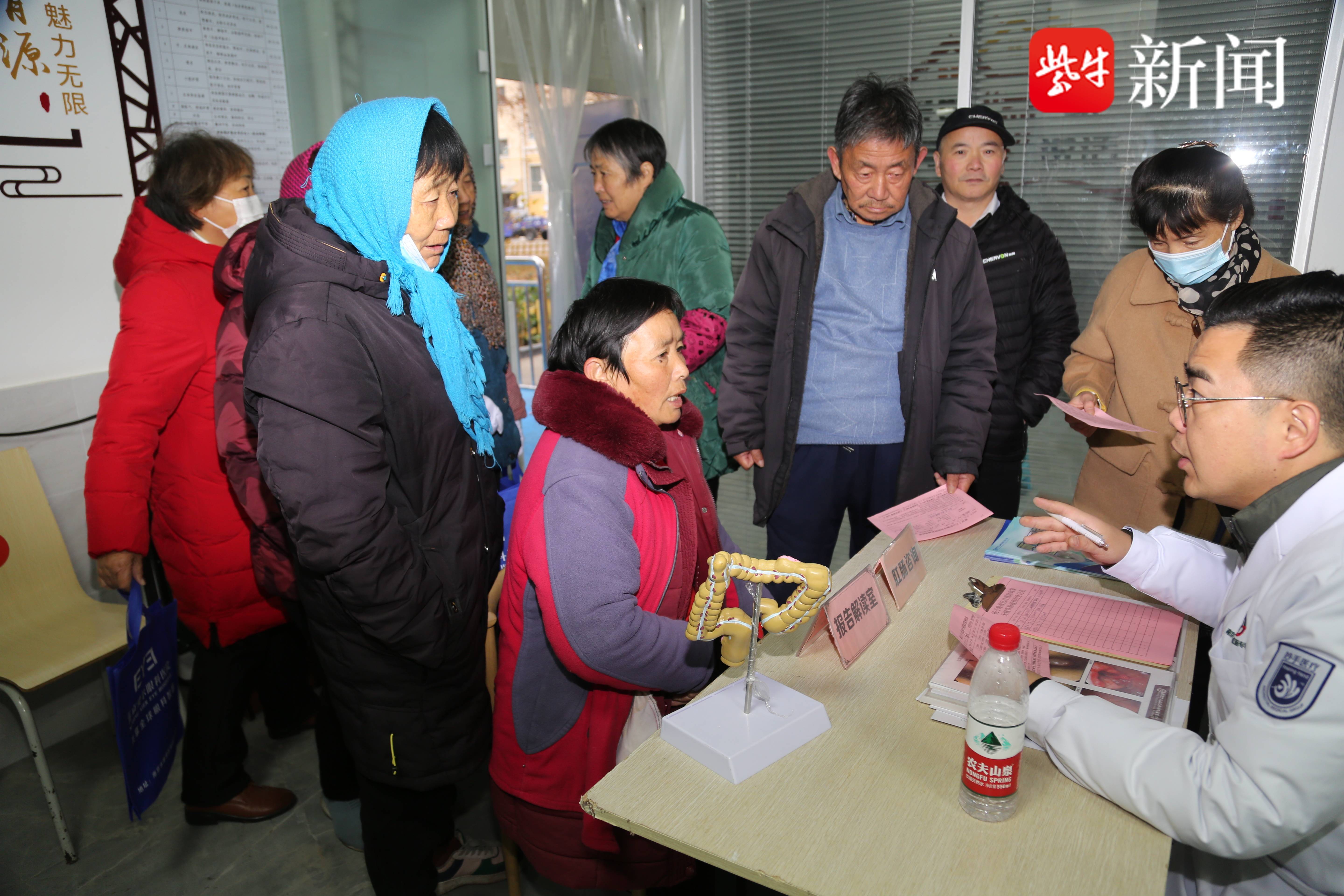 南京丁义山肛肠专科医院的医护人员,除义务居民们提供了测血糖量血压外,还有免费的电子肛门镜检查,检查结果由相关专家现场为受检居民进行解读。