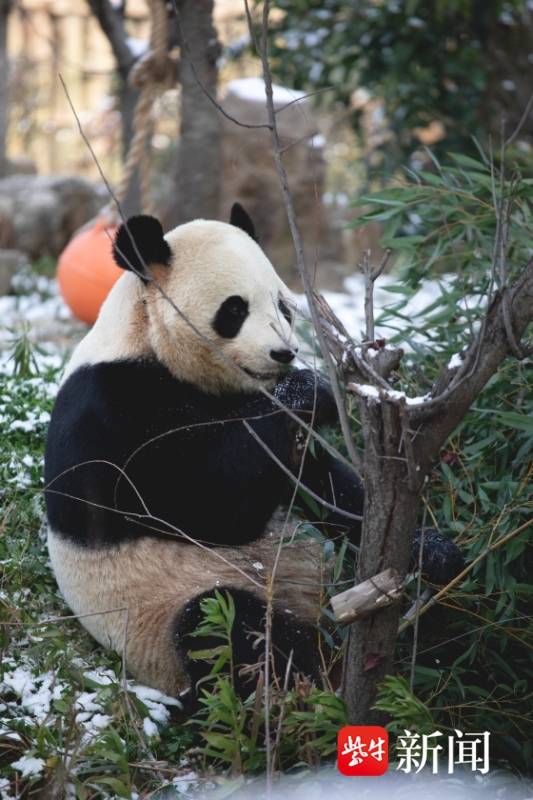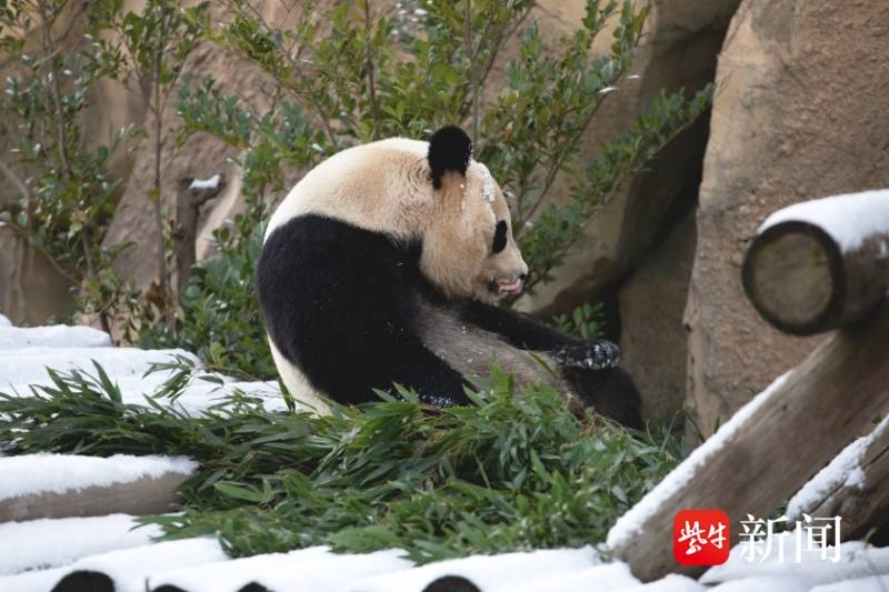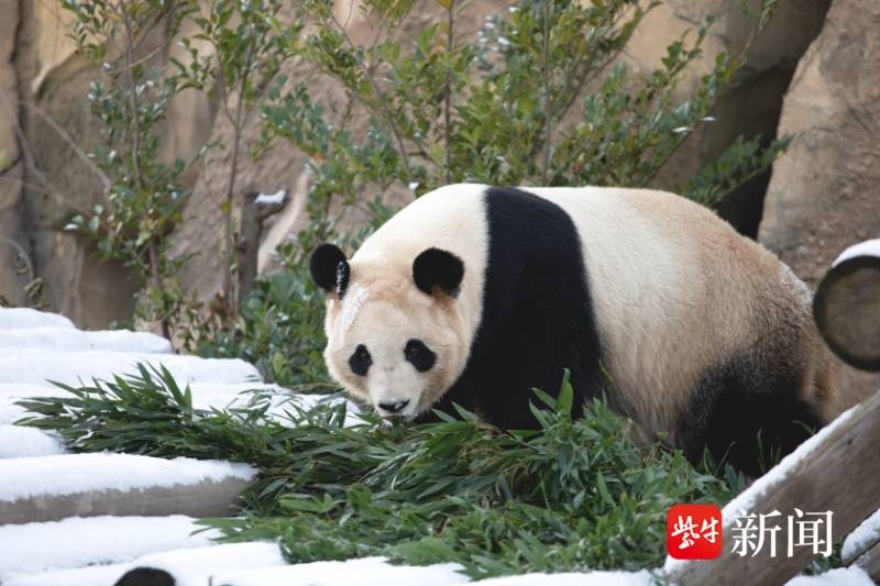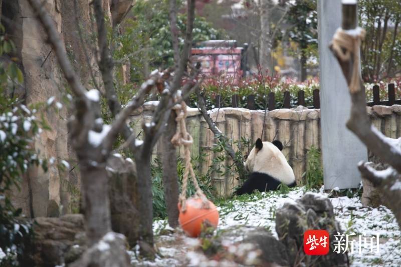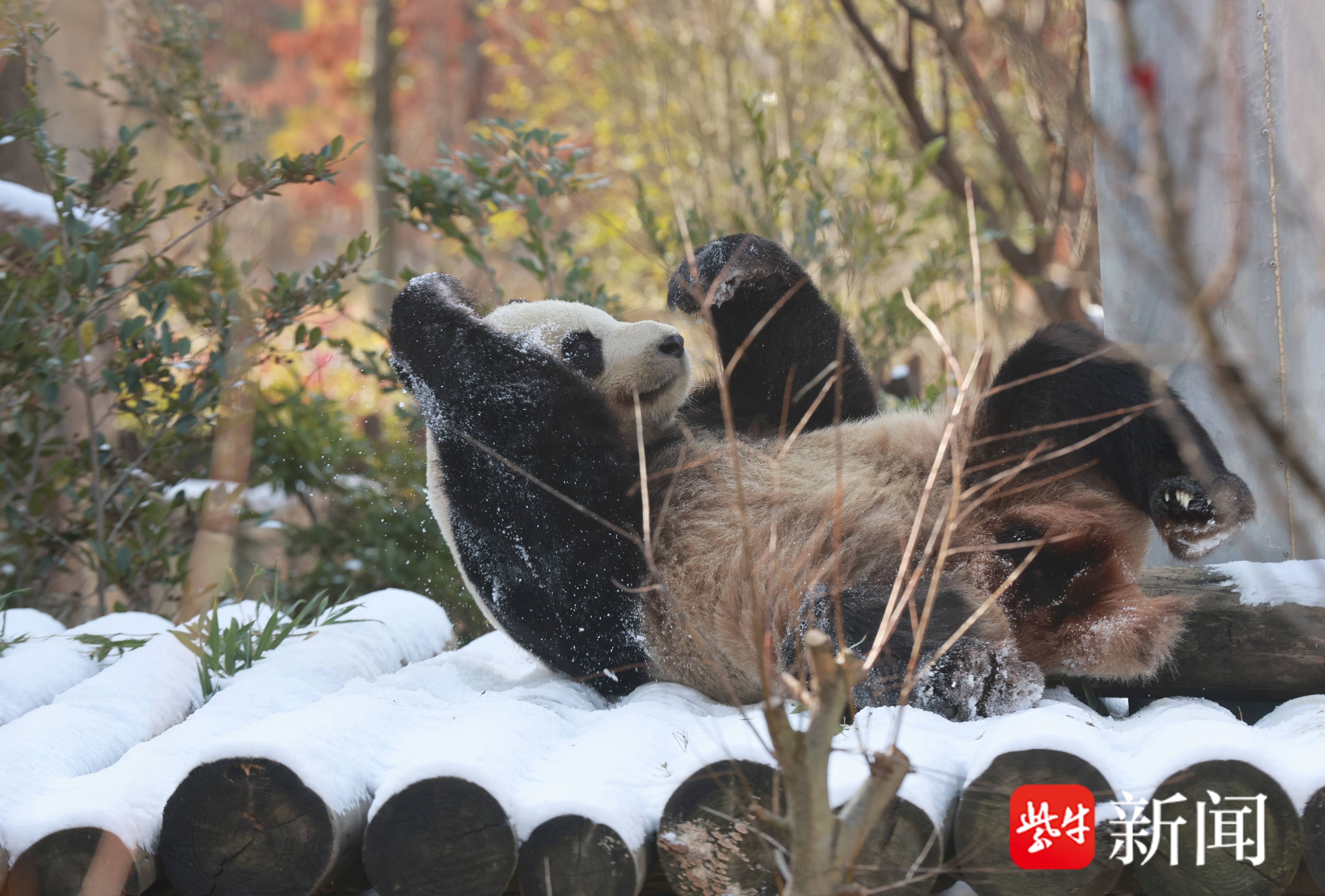 下雪啦!南通动物园里大熊猫雪地“撒欢儿”