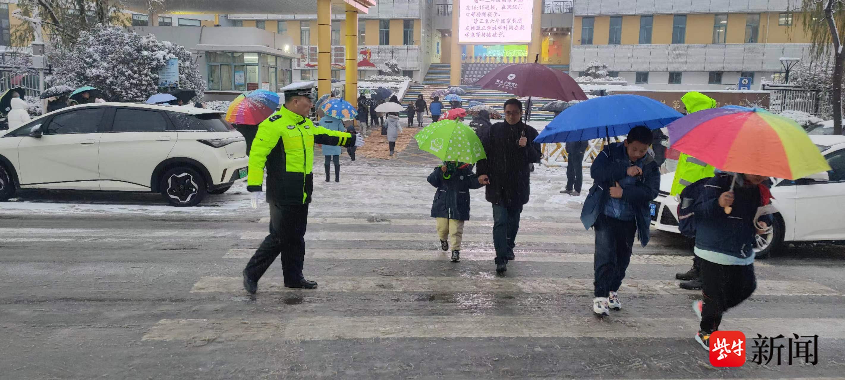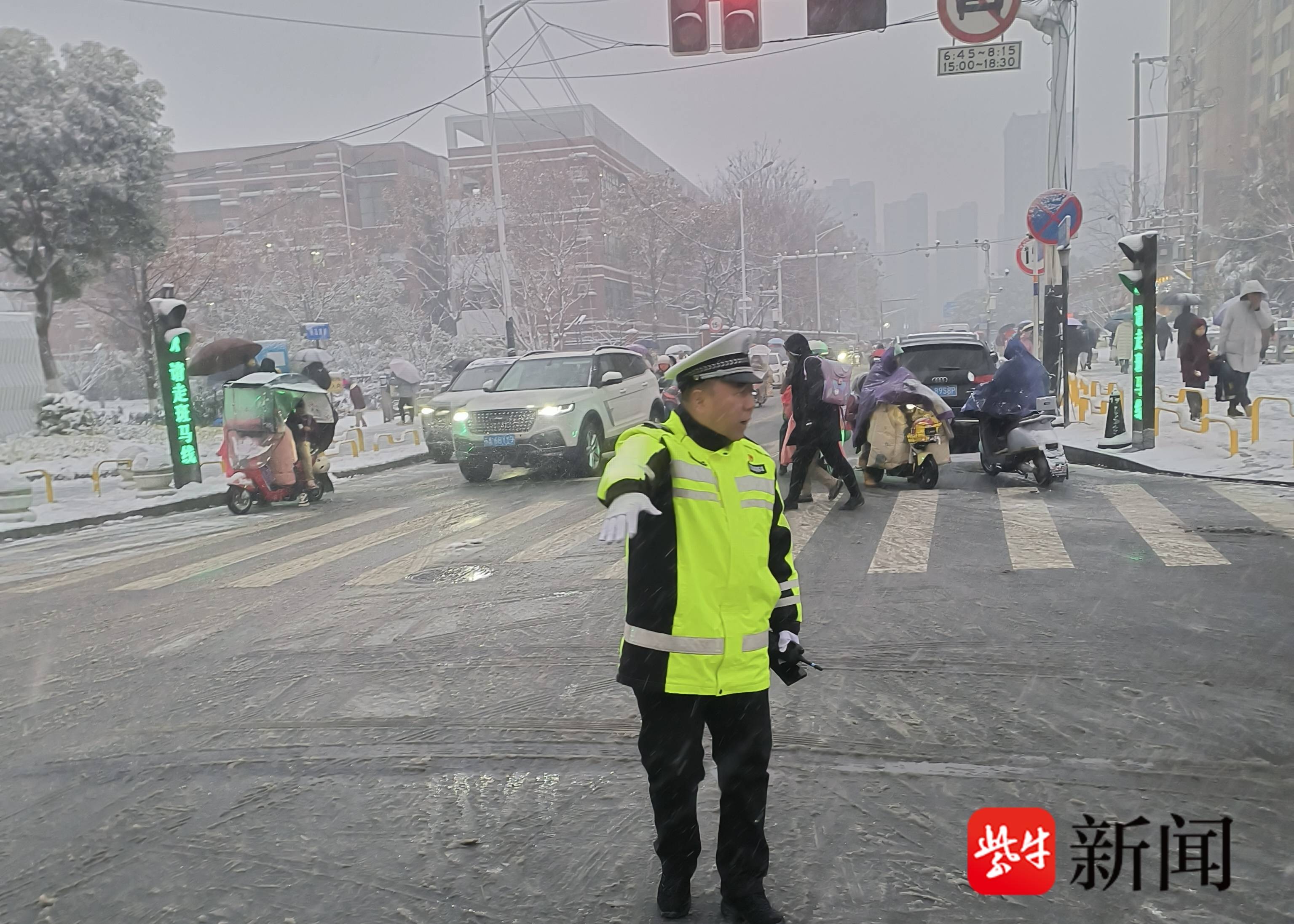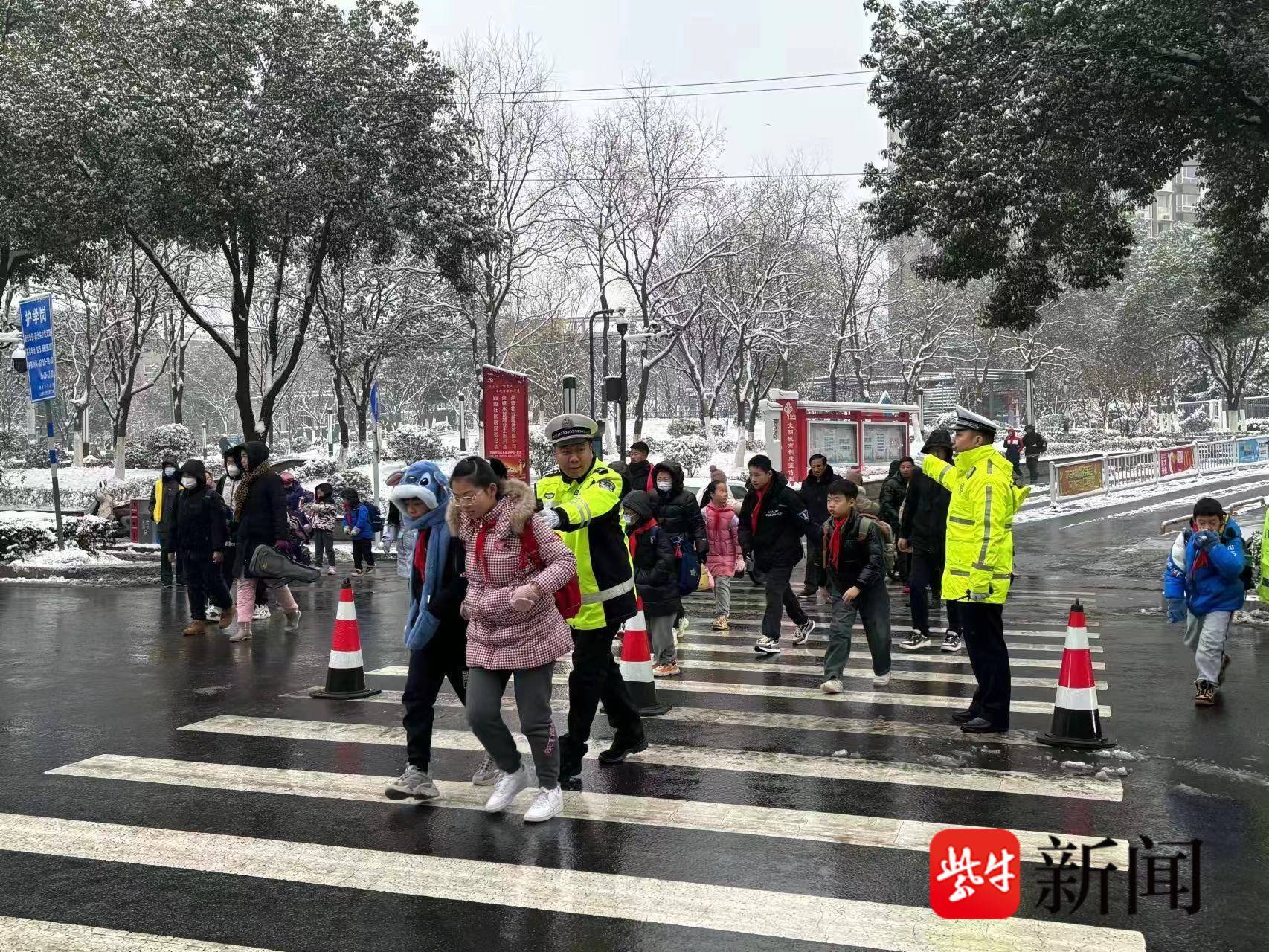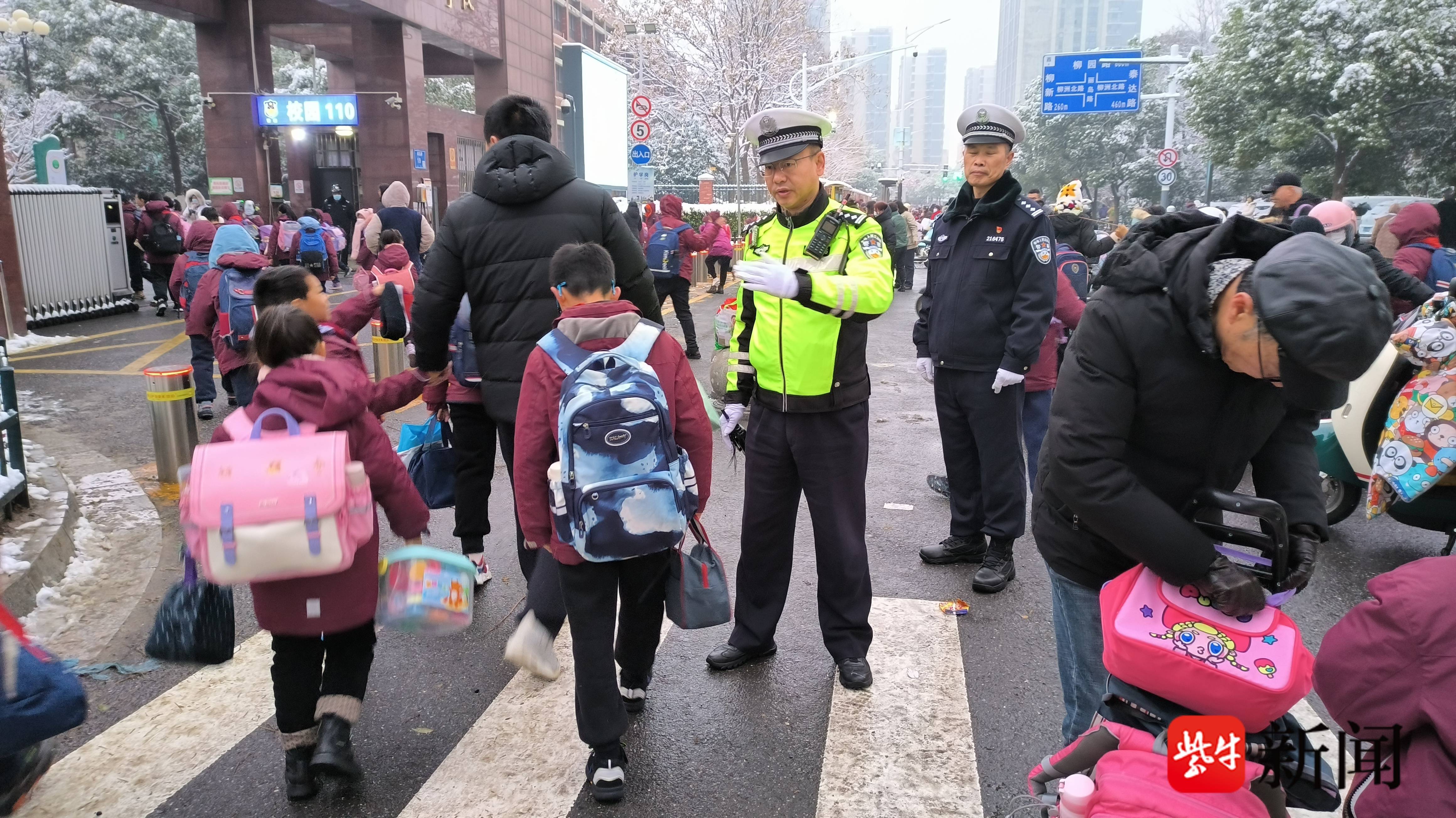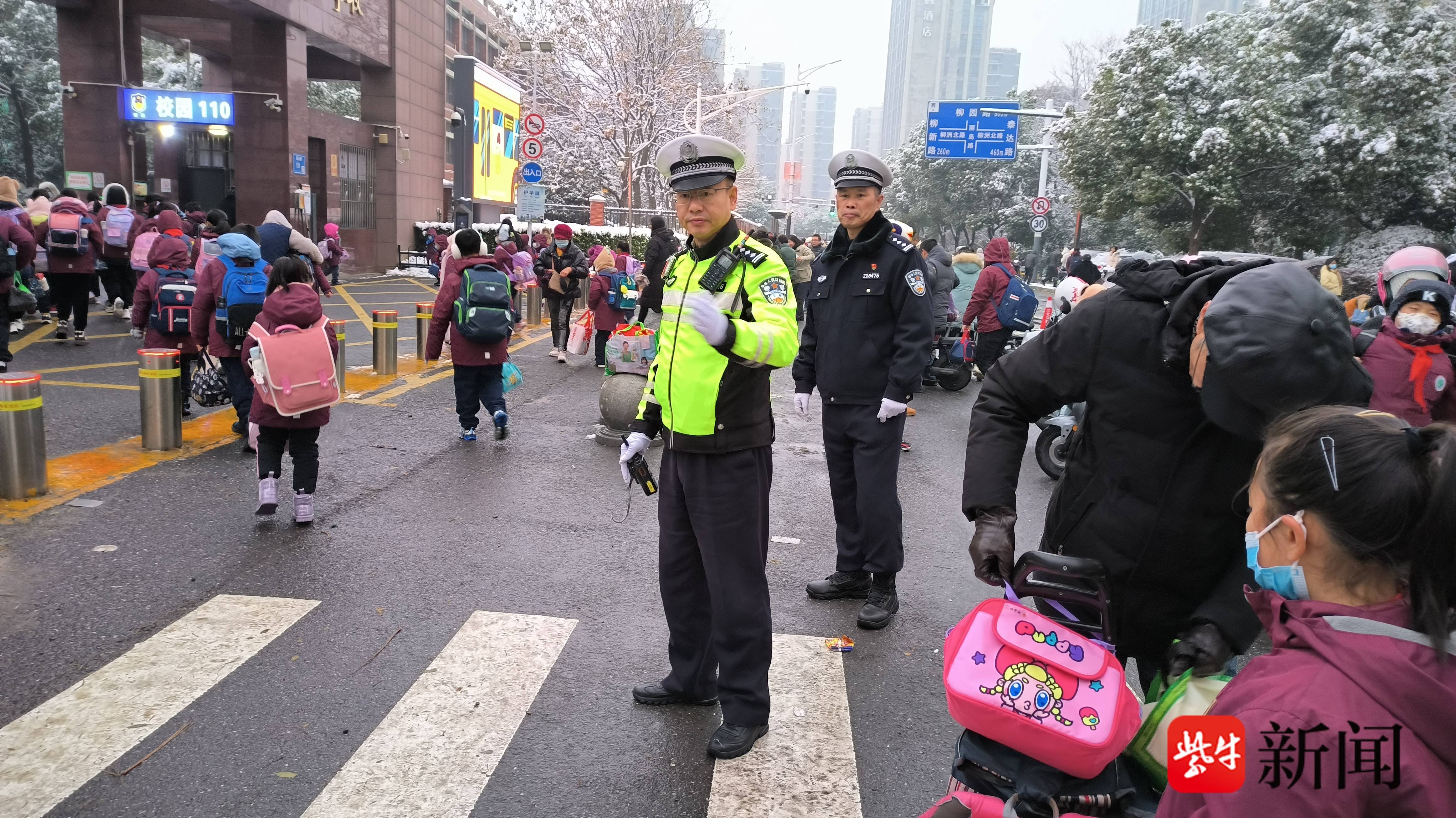 为此,南京市公安局江北新区分局交警支队高度重视,提前组织部署,因校施策,各大队组织“护学岗”警力提前到岗,加大对校园周围路段的指挥疏导及巡逻管控力度,引导接送学生的私家车辆有序停放,为雪天师生出行,铺设一条安全防护线。