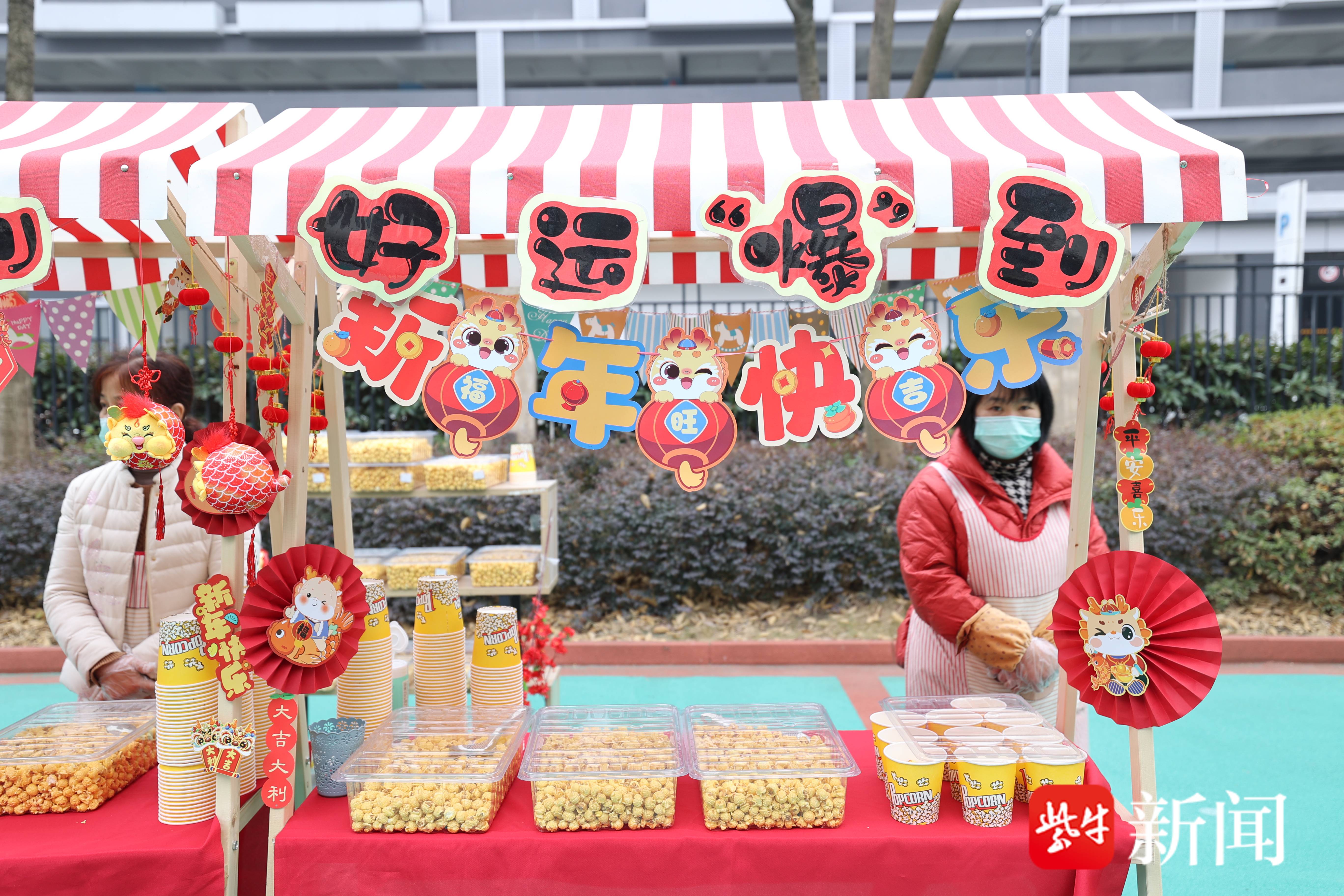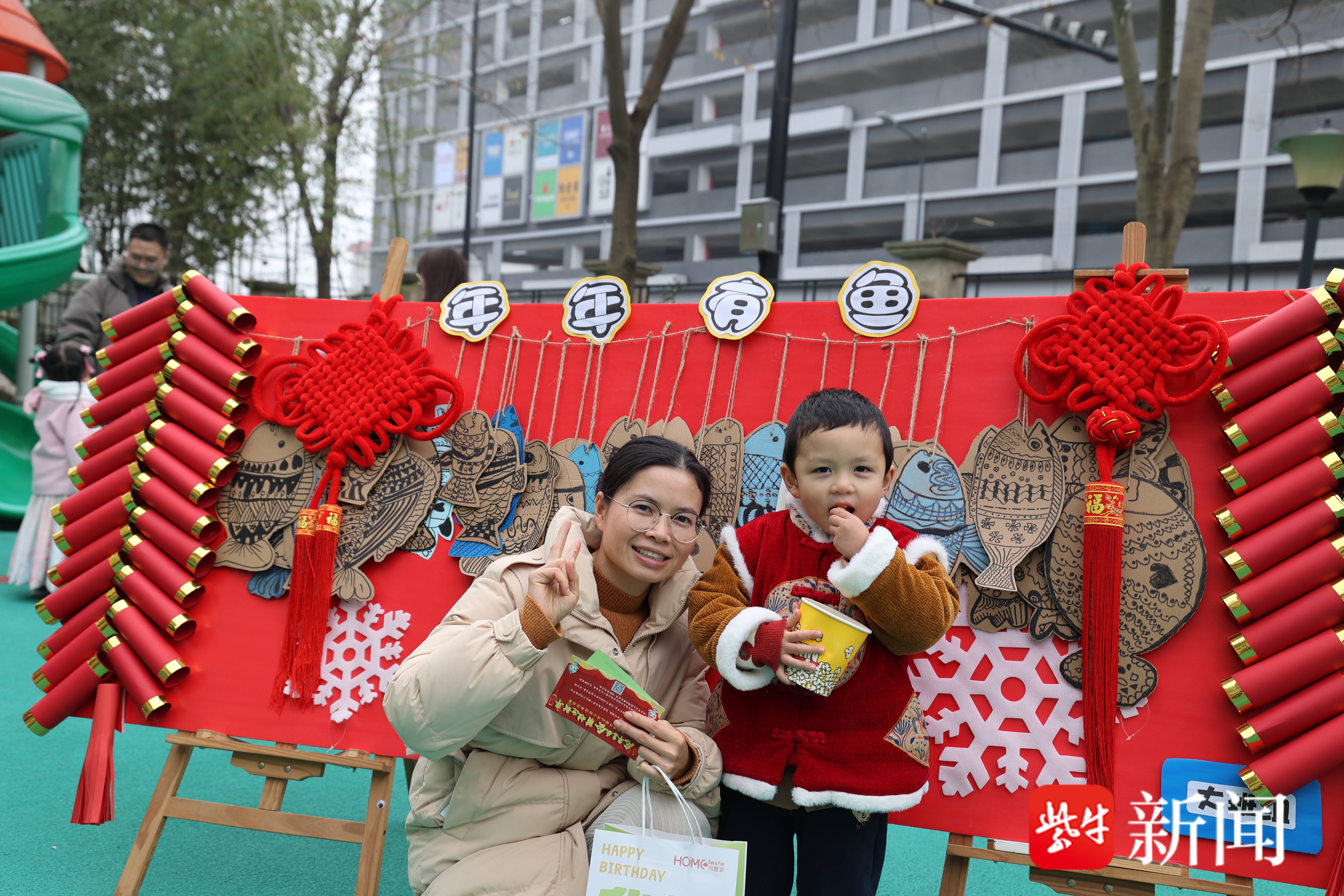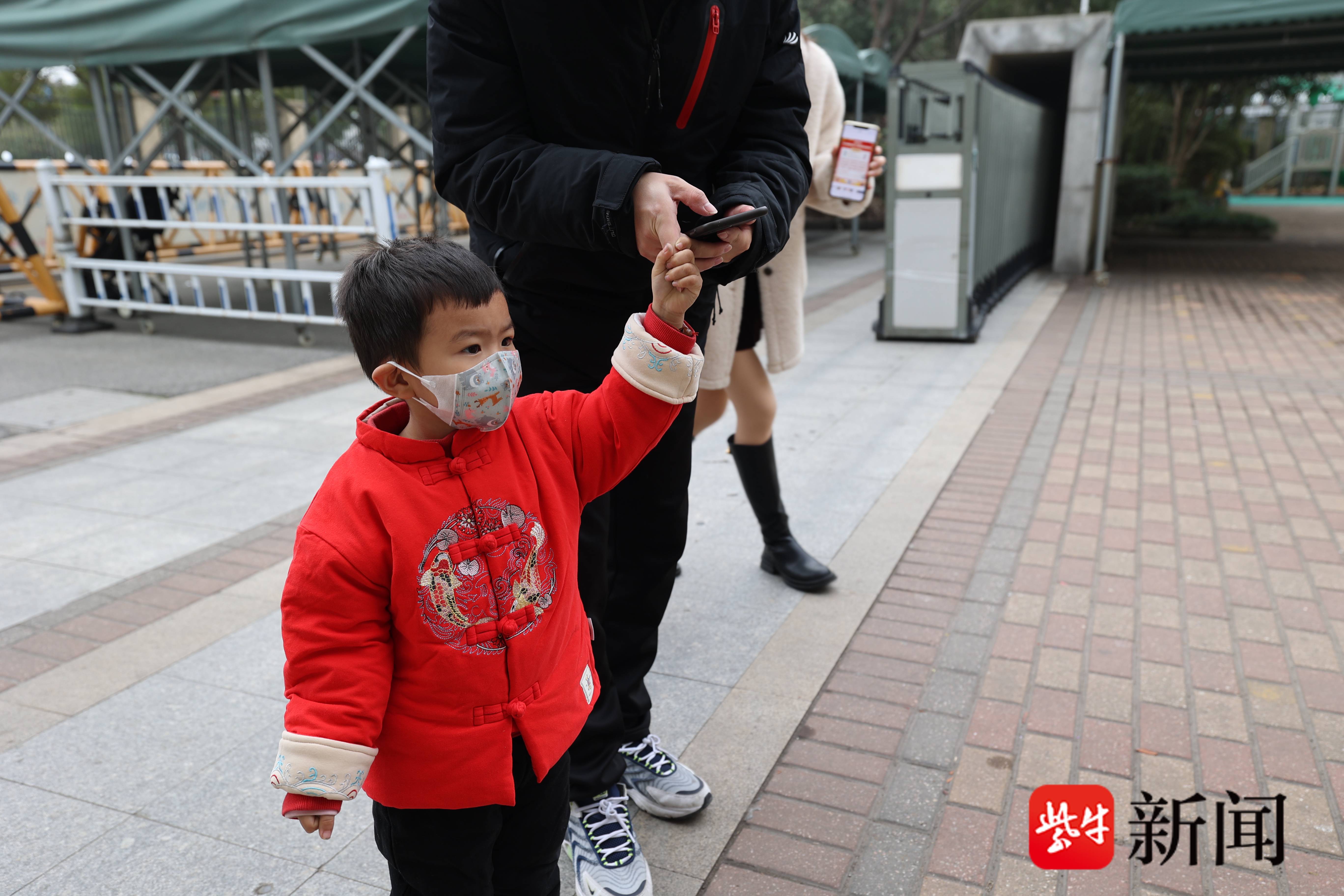 上午8点45分,扬子晚报/紫牛新闻记者看到,参与活动的家庭正在校门口领取活动游园卡。据了解,本次游园会游戏共设立了十二个主题,分别为“年年有鱼”、“投壶纳财”、“祥龙套圈”等特色活动,在游戏中集齐十二颗星星后即可前往学校操场兑换美食!