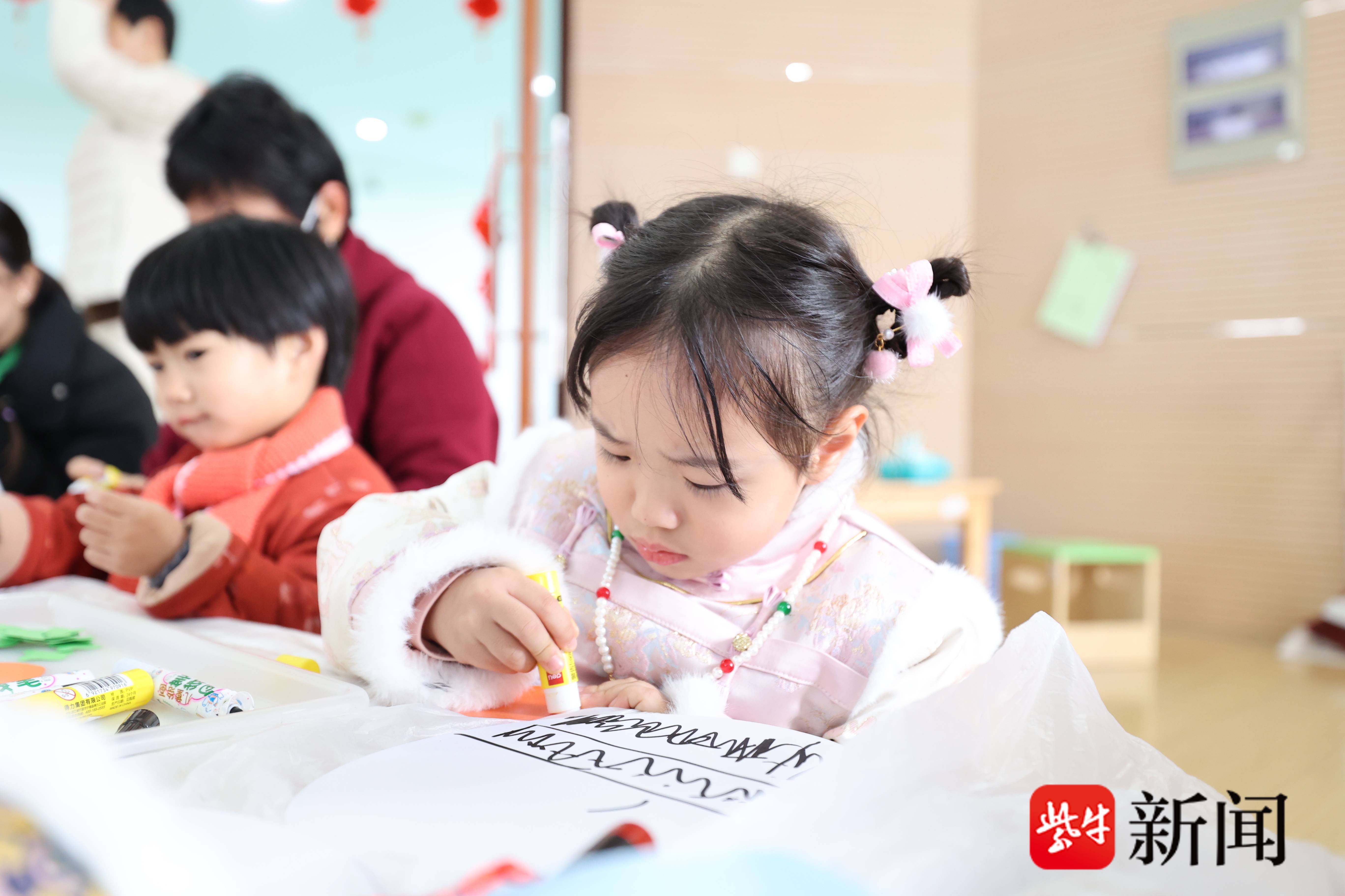 活动现场,新年祝福语在喜庆的灯笼上飘荡,窗户上贴着各式各样的迎新窗花,教室里充斥着新年的祝福,年味与暖意在这里氤氲。