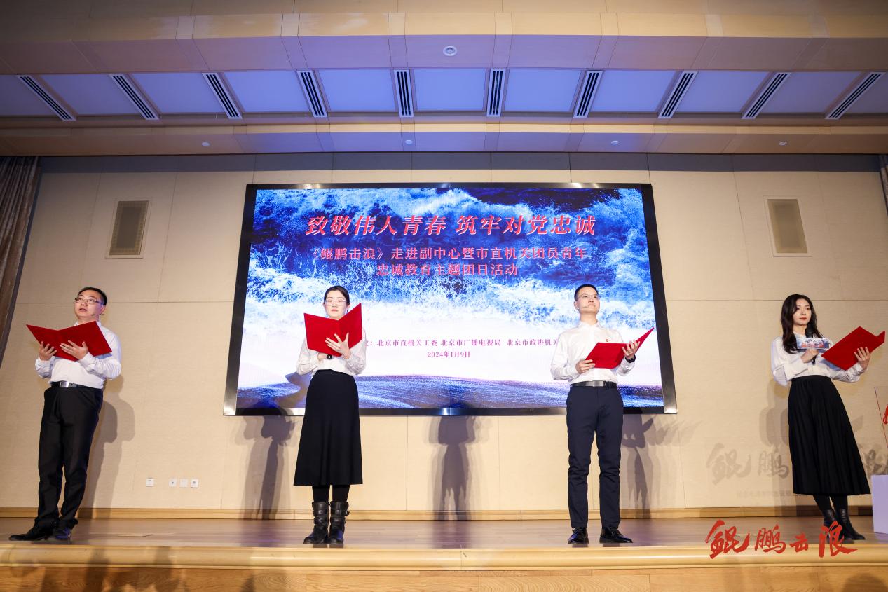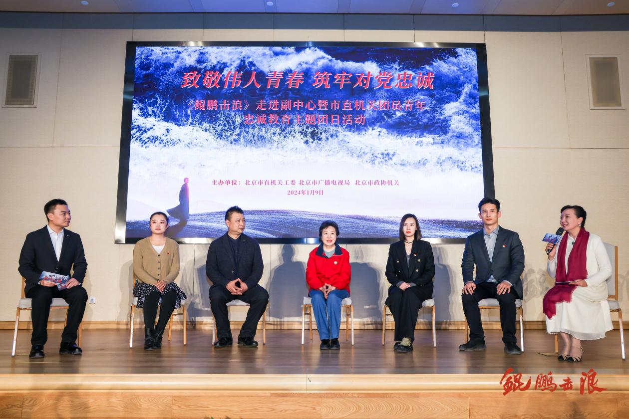 由北京市直机关工委、北京市广播电视局、北京市政协机关联合主办的“致敬伟人青春 筑牢对党忠诚”《鲲鹏击浪》走进副中心暨市直机关团员青年忠诚教育主题团日活动近日在京举行。北京市直机关工委副书记何群,北京市广电局副局长、机关党委书记、一级巡视张苏,北京市政协机关党委专职副书记江宗盟以及《鲲鹏击浪》剧组主创、市直机关青年代表出席了活动。