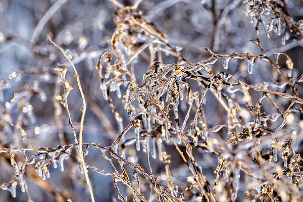 在两千米以上的高空,水汽被“速冻”,以雪花或冰晶的状态存在,但在一千米至两千米的较低海拔地区,受暖湿气流的控制,温度达到冰点以上,而此时近地面温度在冰点以下,低于高空温度,形成逆温层。冰晶或雪花穿越逆温层,融化成水滴,到达近地面时又再次被迅速冷却成过冷水滴,到达物体表面,如电线杆、植物、树木等,由于周围环境低于冰点,就会形成一层冰壳,气象上称之为冻雨。我国南方一些地区把冻雨又叫做“下冰凌”,北方地区称它为“地油子”。