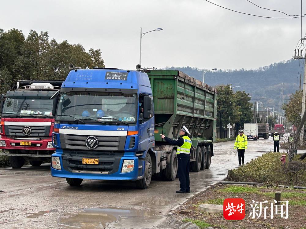 严查大货车各种“花式违停”,丹徒交警开展整治“清扫”行动