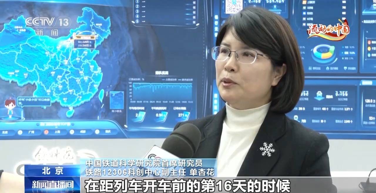 中国铁道科学研究院首席研究员 铁路12306科创中心副主任 单杏花:原先可以选择两个相邻日期,每个日期5个车次,最多是10个需求,我们现在给它扩到了可以选择任意的三个日期,累计可以达到60个车次、日期的这种组合。