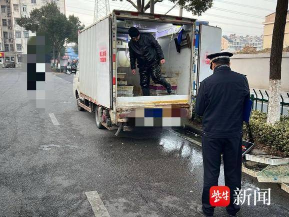 扬子晚报网2月4日讯(通讯员 徐晓明 记者 张可)近日,南京江北新区大厂街道综合执法大队的执法队员巡查至草芳路时发现,有人在一辆大货车后面正一箱一箱地往下倒着水,当时气温较低,极易造成路面结冰现象。