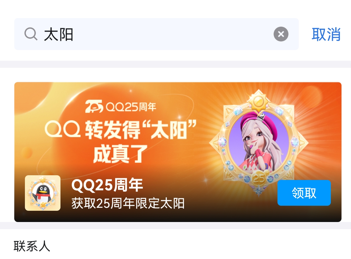 对此,腾讯QQ回应:这次是真的!为庆祝腾讯QQ25周年生日,官方面向所有用户推出“转发得太阳头像挂件”的活动。