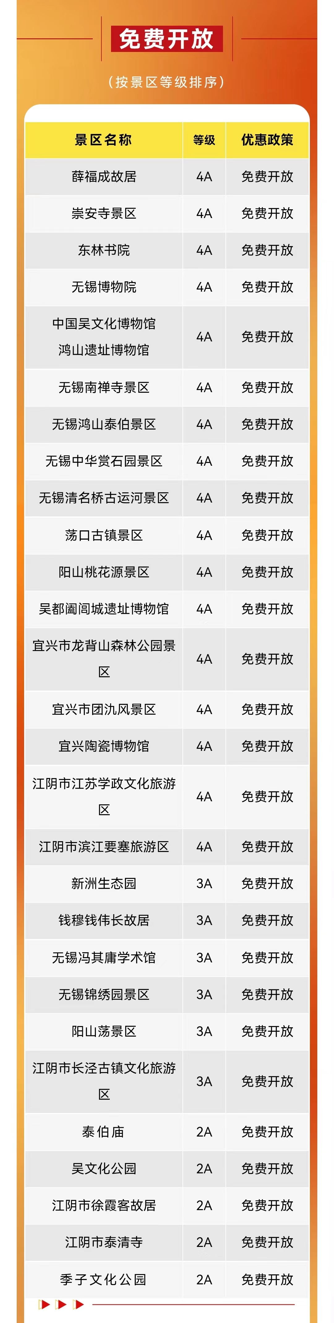 免费开放景区名单