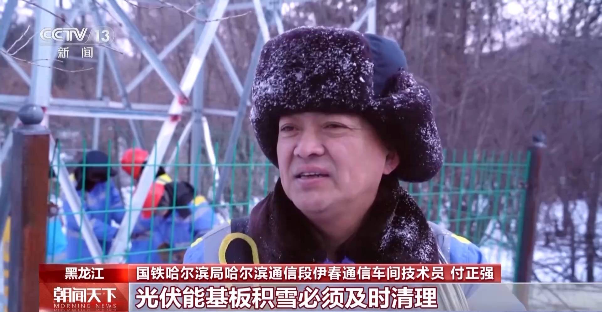 国铁哈尔滨局哈尔滨通信段伊春通信车间技术员 付正强:我们小兴安岭一到冬天雪特别大,光伏能基板积雪必须及时清理,蓄电池无法进行充电时候就会影响到通讯,假如列车与车站、车站与各站、调度与各站之间无法进行通信联系,那后果将不堪设想,通信是铁路运行稳定的重要保障。