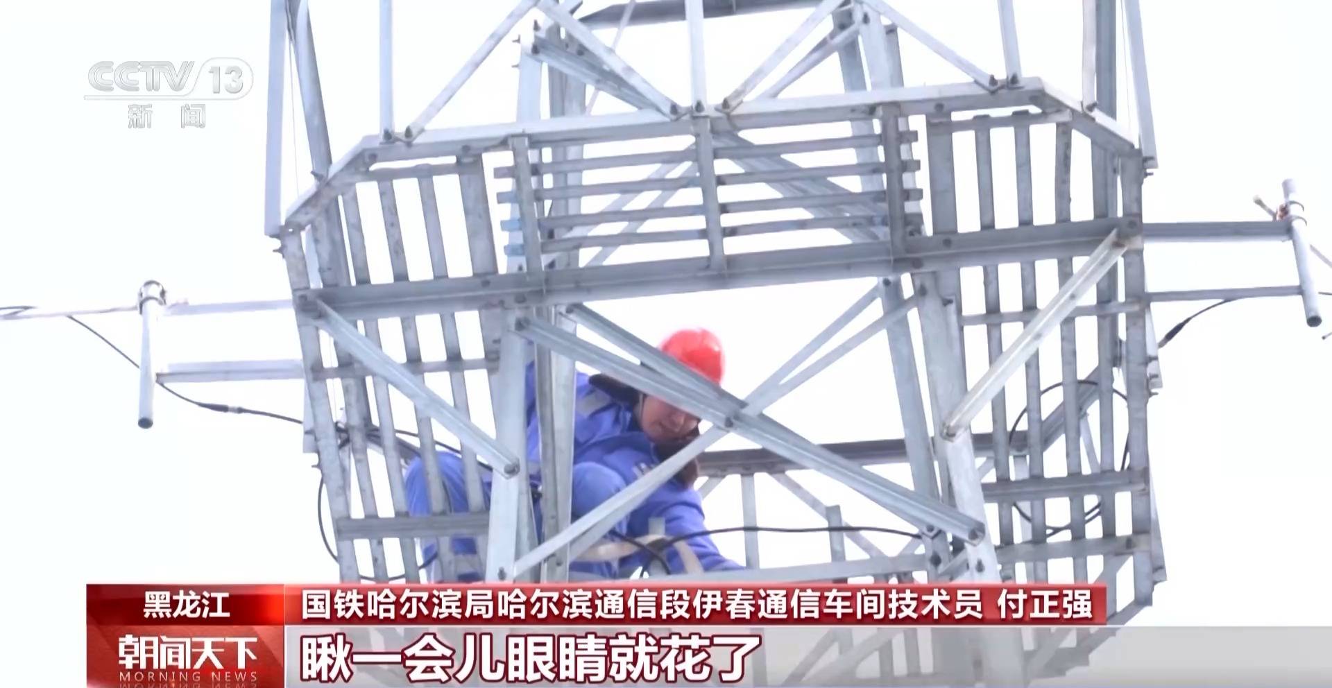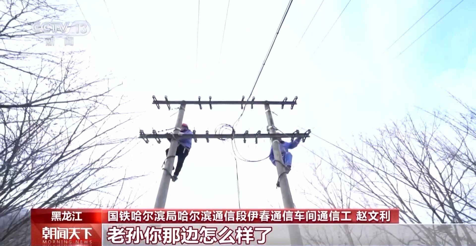 国铁哈尔滨局哈尔滨通信段伊春通信车间技术员 付正强:电杆和线路上挂的全是积雪,白茫茫一片,瞅一会眼睛就花了,巡检工作看着简单,心要不细,没点耐心,真干不了。